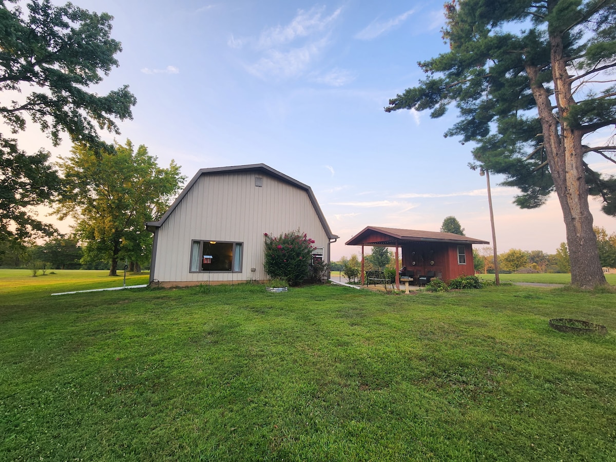 या सुंदर 375 चौरस फूट कॉटेजमध्ये लहान फार्महाऊस जीवनाचा आनंद घ्या. तुम्हाला आवश्यक असलेल्या सर्व गोष्टींनी भरलेले हे छोटे कॉटेज आमच्या 11 एकर फार्मवरील काही झाडांच्या मागे खाजगीरित्या वसलेले आहे. तुमच्या खिडक्या आणि कुरणातील कुंपणातील सुंदर दृश्यासह तुम्ही शहराच्या किती जवळ आहात हे तुम्ही लवकरच विसरून जाल. तुम्ही येथे वाईनरीजसाठी, अप्रतिम हायकिंगसाठी, SIU इव्हेंटसाठी (3 मैल) किंवा कुटुंबासमवेत भेट देण्यासाठी असलात तरी, होमस्टेड कॉटेज कोणत्याही साहसापासून आरामदायक विश्रांती देईल.