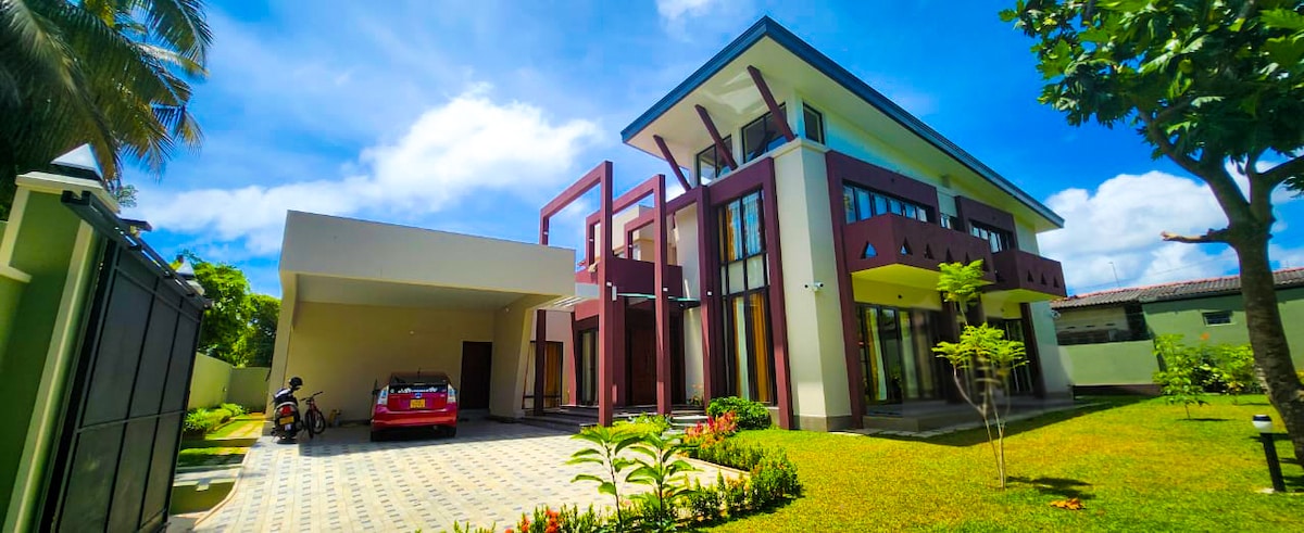 आमच्या घराची वैशिष्ट्ये विचारपूर्वक क्युरेट केलेली सौंदर्याची आहेत आणि तिच्या सभोवताल एक सुंदर बाग आहे. व्हिला मध्यभागी गॉल रोडवर आहे, सार्वजनिक वाहतूक आणि प्रमुख सुपरमार्केट्स, शॉपिंग सेंटर आणि सिनेमाजपासून चालत अंतरावर आहे. आंतरराष्ट्रीय विमानतळापासून 60 मिनिटांच्या अंतरावर. एक्सप्रेसवे एंट्रीसाठी 15 -20 मिनिटे ड्राईव्ह करा. माऊंट लावानिया बीचपासून 15 मिनिटांच्या अंतरावर आहे. पूर्व किनारपट्टी आणि बेटाचा उत्तर भाग एक्सप्लोर करण्यासाठी देशांतर्गत विमानतळ (कोलंबो विमानतळ) 10 मिनिटांच्या अंतरावर आहे.