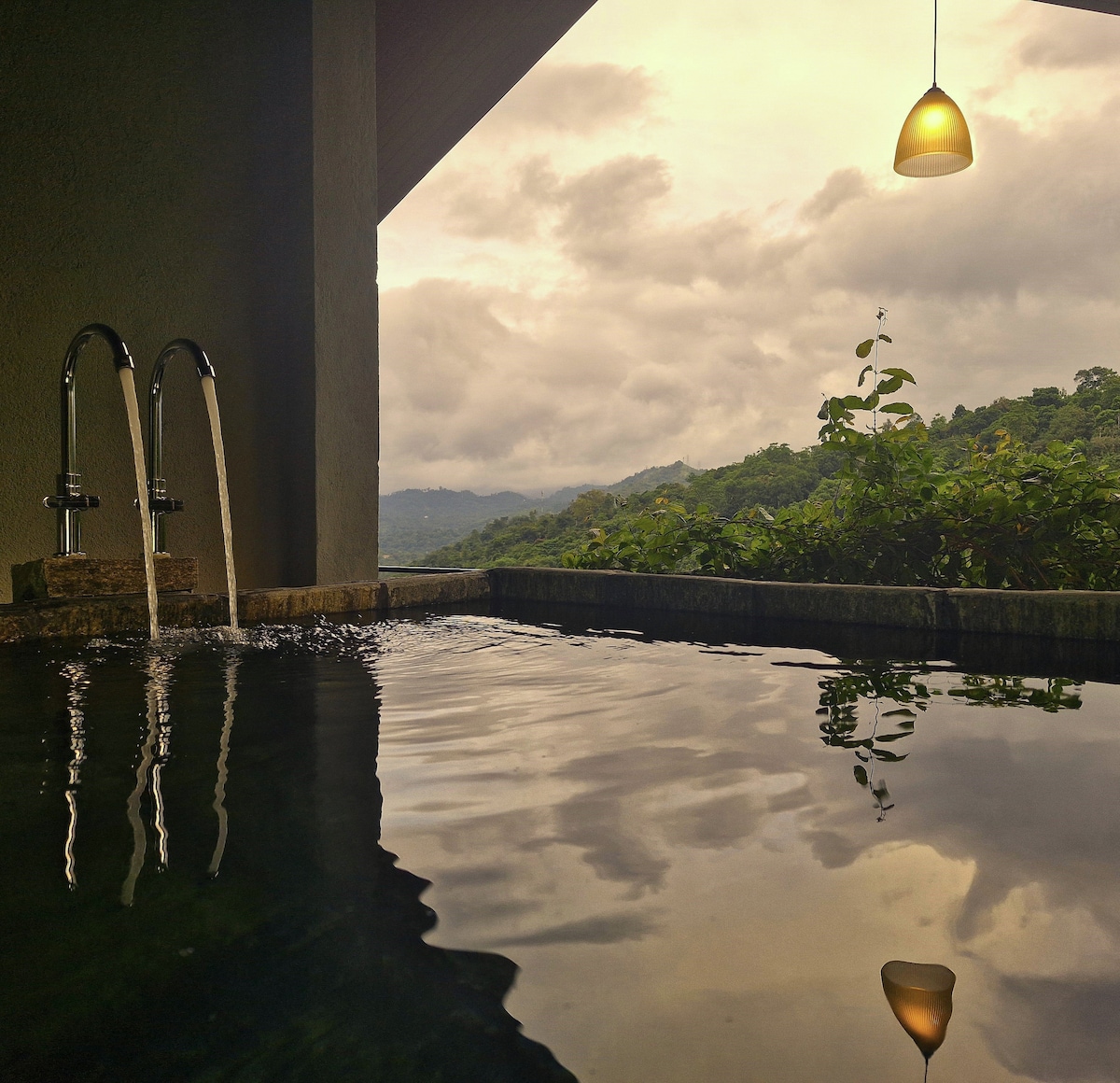 Escape to Aqua Pavilion at Kandy Victoria Eco Resort, one of the best boutique hotels in Kandy, Sri Lanka. This luxurious room features a private balcony and a chill tub, offering stunning views of Victoria Reservoir and lush mountains. Enjoy the perfect blend of traditional and modern architecture, complimentary breakfast, and serene surroundings in a calm residential area. Guided hikes, free bicycles, and personalized service complete your unforgettable stay.