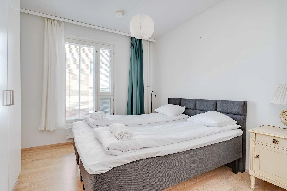 Quiet and nice, pleasant high view. Near TAMK university and tram. Please note: bookings are taken only if you introduce well who you are, your group and your trip. Praise from guests: 1-Excellent location! 2-Excellent traffic, tram stop right nearby. It is a really short walk to the hustle and bustle of the city center. 3-It is still a quiet neighborhood and nice views from the balcony. Well maintained 1950's style simple Finnish apartment building. Please no booking on behalf of other person.