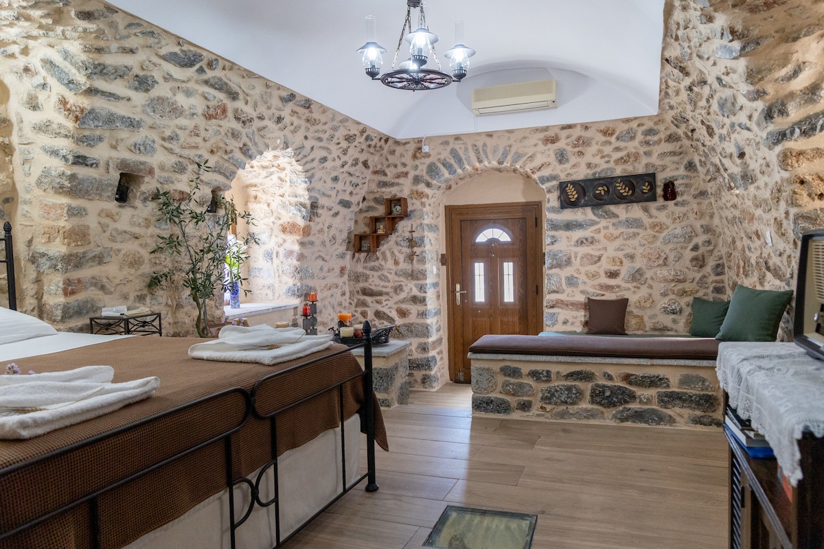 मानीच्या इतिहास आणि वास्तुकलेचा आदर करून पुनर्संचयित केलेली पारंपारिक गुहा. 400 वर्षे जुना हा गुहा सुईट पाहुण्यांना एक अद्वितीय अनुभव देतो, ज्यामध्ये गुहेची प्रामाणिकता आणि आधुनिक सुविधांचे संयोजन आहे. ही इमारत पूर्णपणे दगडी आहे आणि मानीच्या पारंपारिक शैलीत बनलेली आहे. आत, तुम्हाला एक अस्सल खडकाचे कोरीव काम सापडेल, जे सावधपणे प्रकाशित केले गेले आहे, जे या जागेच्या काळजीपूर्वक पुनर्संचयनादरम्यान उघडकीस आले आणि ठळकपणे समोर आले.