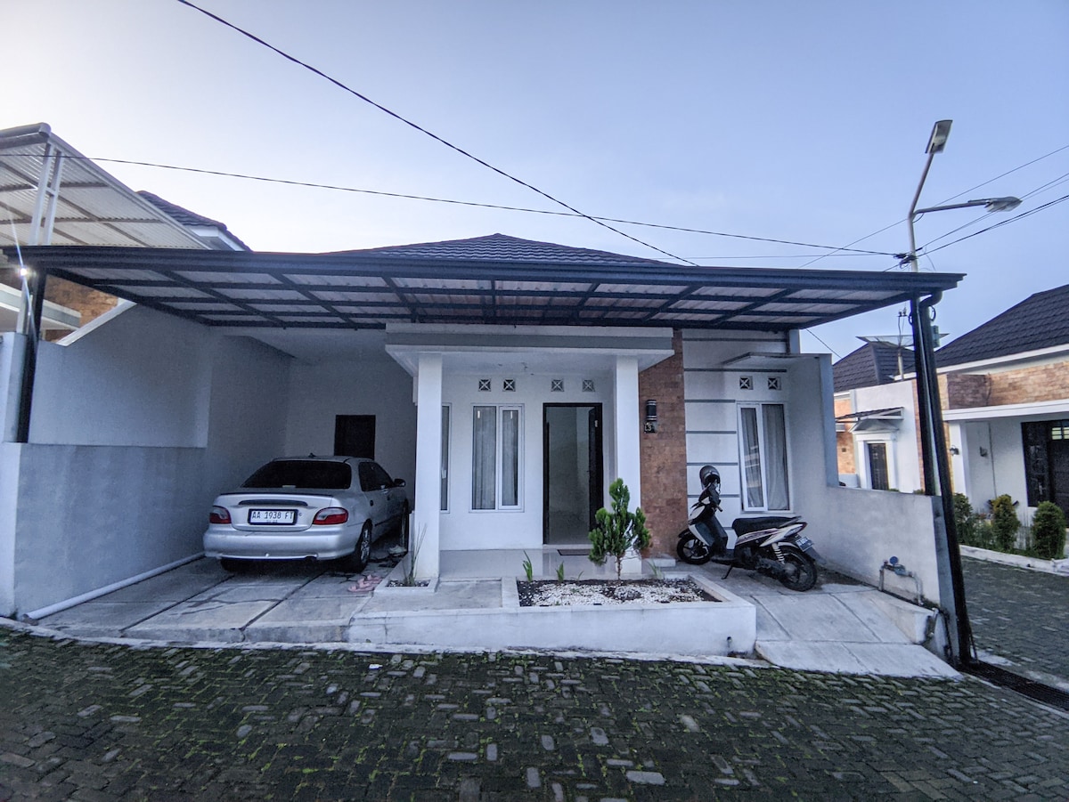 होमस्टे 3 बेडरूम्स + 2 किमी असलेल्या 15 लोकांपर्यंतच्या क्षमतेसाठी प्रशस्त आहे आणि एक मेझानिन मजला आहे जो माऊंट सिंडोरोचे दृश्य पाहू शकतो. थंड प्रदेशात स्थित आणि वोनोसोबो आणि दिएंगच्या विविध निसर्गरम्य टूर्सच्या जवळ. कराओके सुविधा आणि एक प्रशस्त बॅकयार्ड आहे जे व्यायामासाठी वापरले जाऊ शकते.