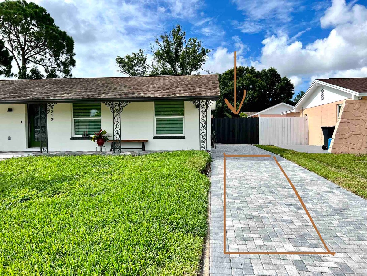 आराम करा आणि आनंद घ्या! जेव्हा तुम्ही या मध्यवर्ती ठिकाणी असलेल्या अपार्टमेंटमध्ये वास्तव्य कराल तेव्हा तुम्ही प्रत्येक गोष्टीच्या जवळ असाल. ताम्पा विमानतळापासून फक्त 13 मैल, बुश गार्डन्सपासून 10 मैल, क्लिअरवॉटर बीचपासून 30 मैल, डाउनटाउन टॅम्पापासून 15 मैल. हे पूर्णपणे अपडेट केलेले अपार्टमेंट एका लहान कुटुंबासाठी परिपूर्ण आहे. यात 1 क्वीन बेड, 1 पूर्ण सोफा बेड आणि 1 बाथरूम आहे. घराच्या उजव्या बाजूला प्रवेशद्वार. गॅरेजच्या दरवाजाच्या अगदी समोर, 1 पार्किंगची जागा ऑफर करते. आजच या!