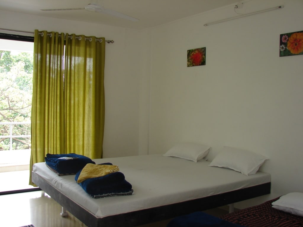 Suite 4 ***Green Roof Resort*** * Enjoy fully private Luxury Suites. - Child friendly Romantic stay. Best for Couples & Families. * Having bigger private terrace with capacity of 4, with magnificent view of Tikona fort & stars. * Each room 3 adults + kid - WIFI * All Suites have sky view for star watching. Each room is fully equipped with large 7'x7' double bed + single bed * Resort have its own Lawn for get together and camp fire. * Inhouse restaurant Nikhara. Payable as per menu