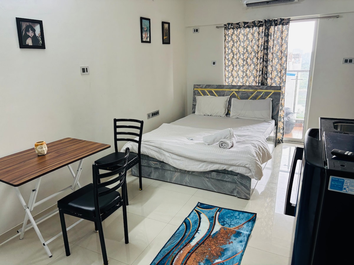 गेराच्या वर्ल्ड ऑफ जॉयमध्ये स्टनिंग क्लीन मॉडर्न स्टुडिओ – WTC, EON आणि बार्कलेज जवळ | वायफाय | एसी | बाल्कनी 🛏️ स्टुडिओ हायलाइट्स: • स्वच्छ लिनन्ससह क्वीन - साईझ बेड • एसी, हाय - स्पीड वायफाय, स्मार्ट टीव्ही • वरच्या मजल्यावर खाजगी बाल्कनी • सुसज्ज किचन (मायक्रोवेव्ह , इंडक्शन, भांडी) • आधुनिक बाथरूम, गीझर. 🏢 सोसायटीच्या सुविधा: • स्विमिंग पूल, जिम, क्लबहाऊस (केवळ निवासी ॲक्सेस) • मुलांचे खेळाचे क्षेत्र, जॉगिंग ट्रॅक, टेनिस कोर्ट उघडा • 24/7 गेटेड सुरक्षा, लिफ्ट्स, पॉवर बॅकअप