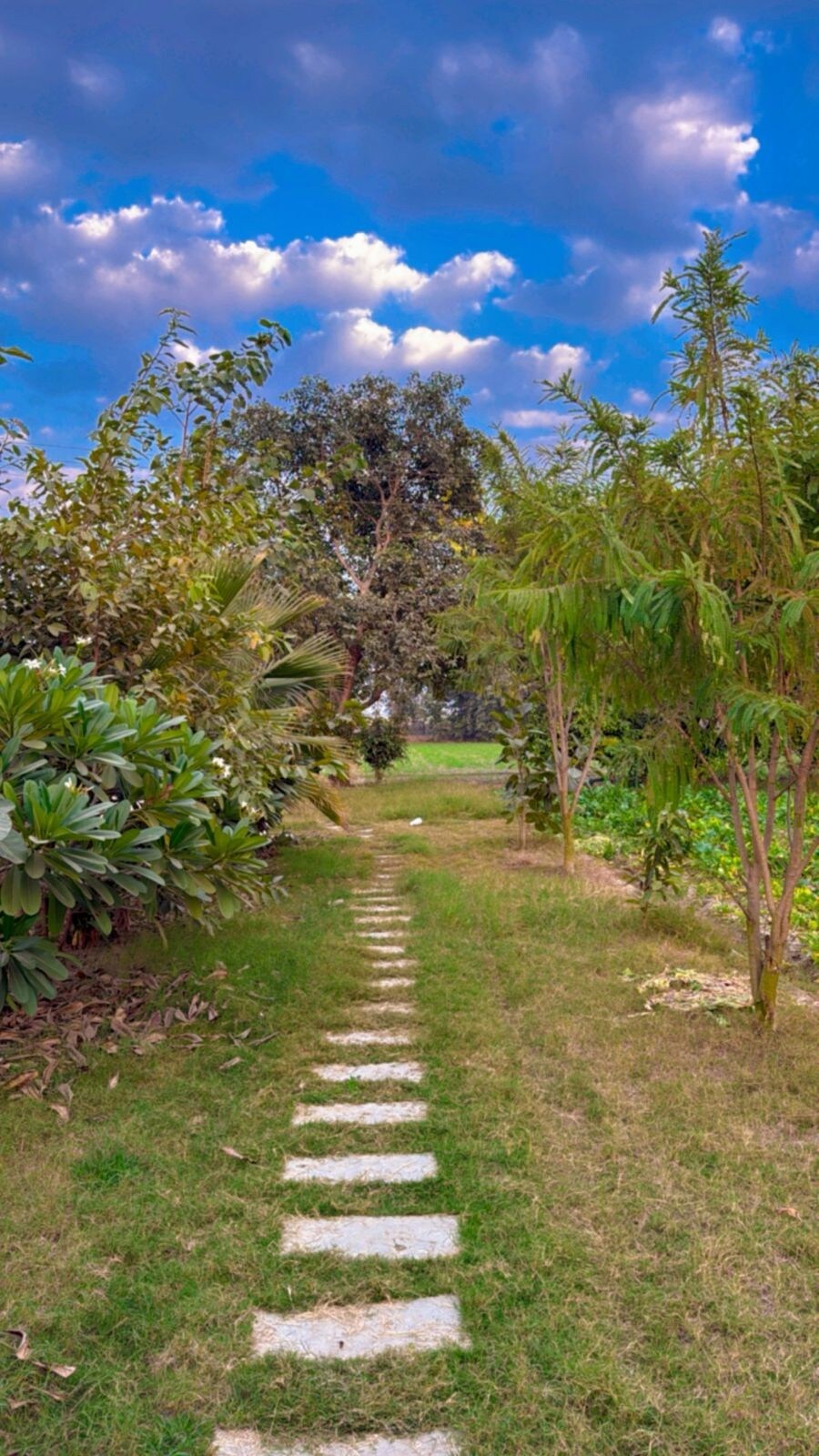 🌿 Farmstead Meadows – A Spacious Countryside Retreat: Enjoy a serene 8,950 sq. ft. farmhouse with 2 AC bedrooms (master with bathtub), modern kitchen with 8-seater dining, cozy living room, and lush gardens with seasonal fruits & flowers. Secure parking for 4 cars. Just 4 km from schools, markets & hospitals—perfect for family getaways and nature lovers.
