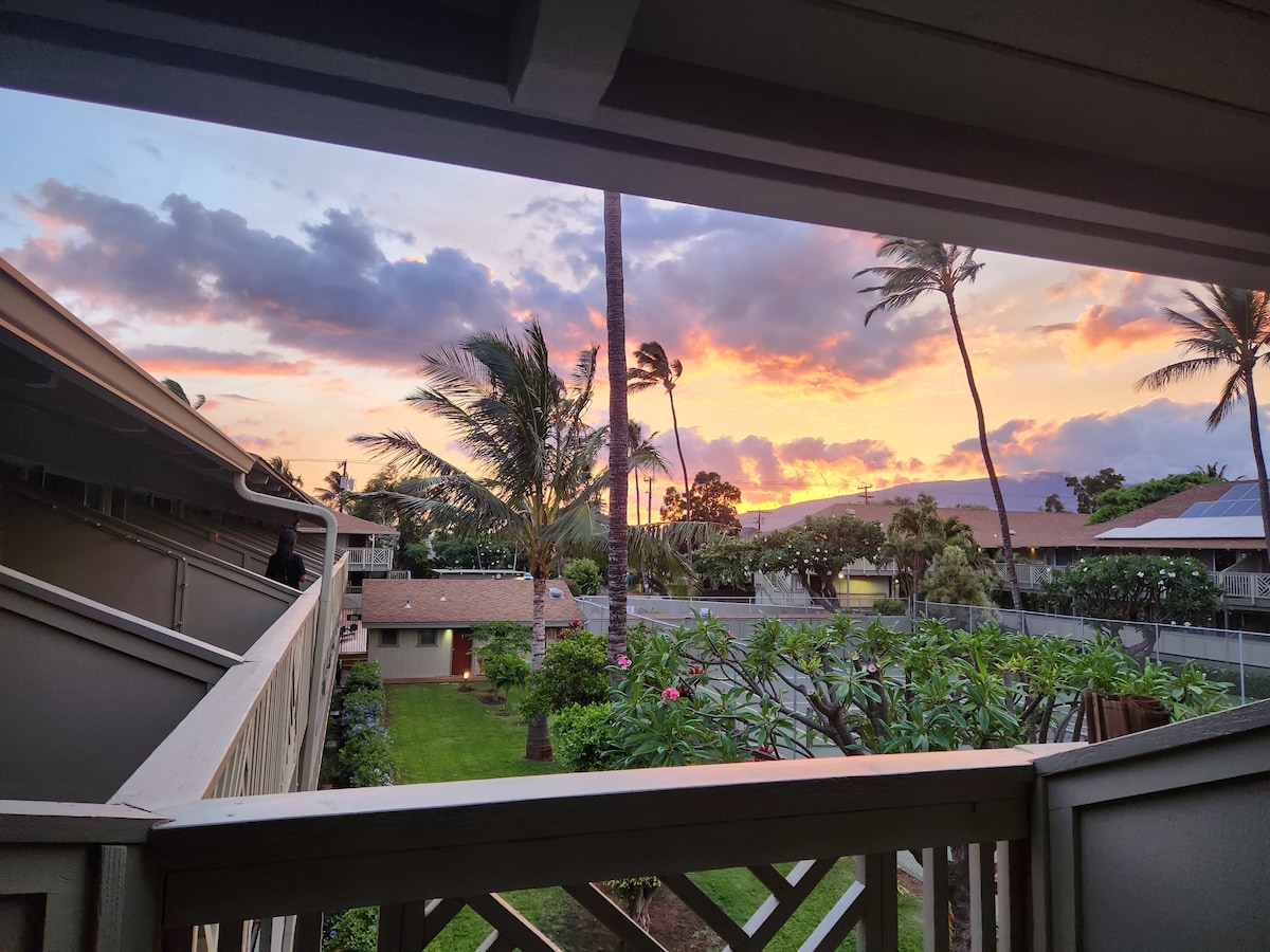दक्षिण माऊईमधील सर्वात इष्ट काँडो कॉम्प्लेक्सपैकी एकामध्ये उत्कृष्टपणे नूतनीकरण केलेला टॉप फ्लोअर स्टुडिओ काँडो. तुमच्या खाजगी लनाईमधून सूर्यास्त आणि पीकाबू समुद्राच्या दृश्यांचा आनंद घ्या, प्रॉपर्टीवरील एकाधिक पूल्स आणि हॉट टब्समधील काही उत्कृष्ट समुद्रकिनारे आणि रेस्टॉरंट्स आणि लाउंजमध्ये जा! सर्व काही अलीकडेच नूतनीकरण केले गेले आहे आणि तुम्हाला घरी योग्य वाटण्यासाठी आवश्यक असलेल्या सर्व गोष्टींचा साठा केला आहे (बीचच्या 2 खुर्च्या आणि बीच छत्रीसह).