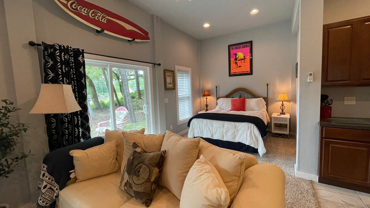 Private, quiet and roomy space is perfectly located off the main roads but still close to the beach. This space was designed and built as a guest suite when the main house was built. Located right on the 7th hole of the Seascape Golf course and barely over a half-mile from the beach. Ride the provided bicycles to the local restaurants. Enjoy a drink on the ground-level deck or at the fire pit patio area. The beach is just a 15 minute stroll. Tranquil and relaxing, you'll be Swept Away!