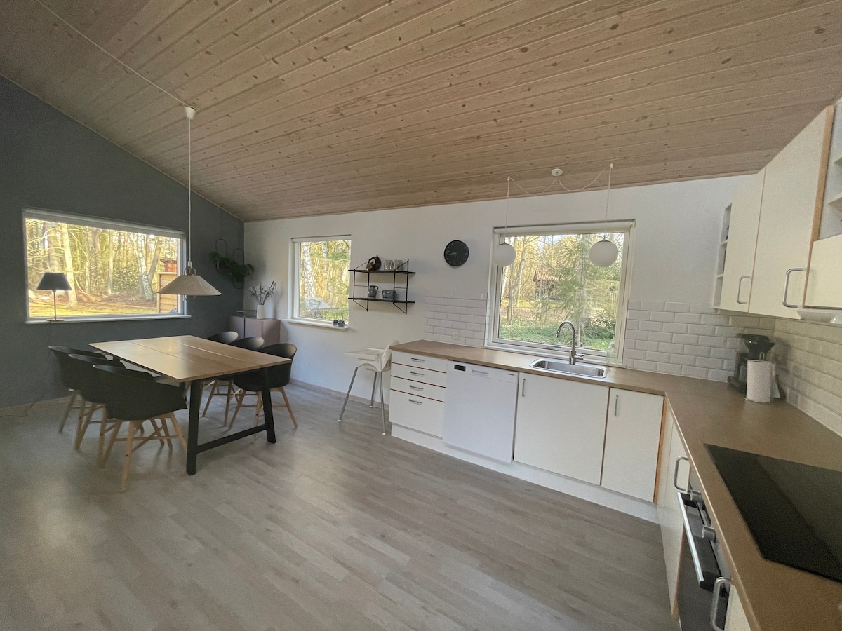 2024 मध्ये नवीन मजले, किचन आणि फर्निचर केले. नवीनतम फोटोज पहा. आमचे उबदार घर ड्यू ओडडेजवळ बोर्नहोमवरील संरक्षित जंगलात आहे. घर 1 मिनिटाच्या अंतरावर आहे. डेन्मार्कच्या सर्वोत्तम वाळूच्या बीचपासून दूर जा, जे सहसा तुमच्याकडे सर्व काही असेल. किराणा खरेदी 6 मिनिटांच्या अंतरावर आहे. या प्रदेशात निसर्गरम्य ट्रेल्स आहेत, जिथे तुम्ही बर्याच लोकांना भेटू शकणार नाही. घरात 3 बेडरूम्स, एक कन्झर्व्हेटरी, एक बाथरूम आणि एक मोठे किचन क्षेत्र आहे. याव्यतिरिक्त, एक मोठे टेरेस देखील आहे.