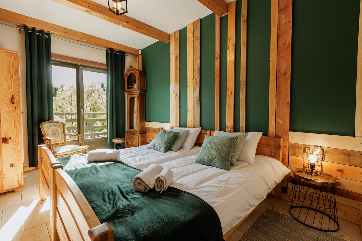 Szalejówka - संपूर्णपणे लाकडाने बांधलेले, जे त्याचे अनोखे वातावरण तयार करते. येथे तुम्हाला खऱ्या शांततेचा अनुभव येईल, पूर्वीसारखी थोडी झोप मिळेल, फायरप्लेसजवळ आराम करा आणि बोर्ड गेम्स खेळा. उन्हाळ्यात, अंगणात बसणे आणि जंगल, कुरण आणि तस्करीचा खेळ, मुलांचे खेळाचे मैदान पाहणे हा सर्वात मोठा आनंद आहे. तुम्ही ग्रिल किंवा फायर पिटजवळ बसाल. पर्वतांमध्ये जाण्याचे सुनिश्चित करा. तुम्ही आमच्याकडून संपूर्ण कोटलिनला भेट देऊ शकता. आम्ही परफेक्ट गेटअवे आहोत. आम्ही तुमच्यासाठी होममेड ब्रेड बनवू.