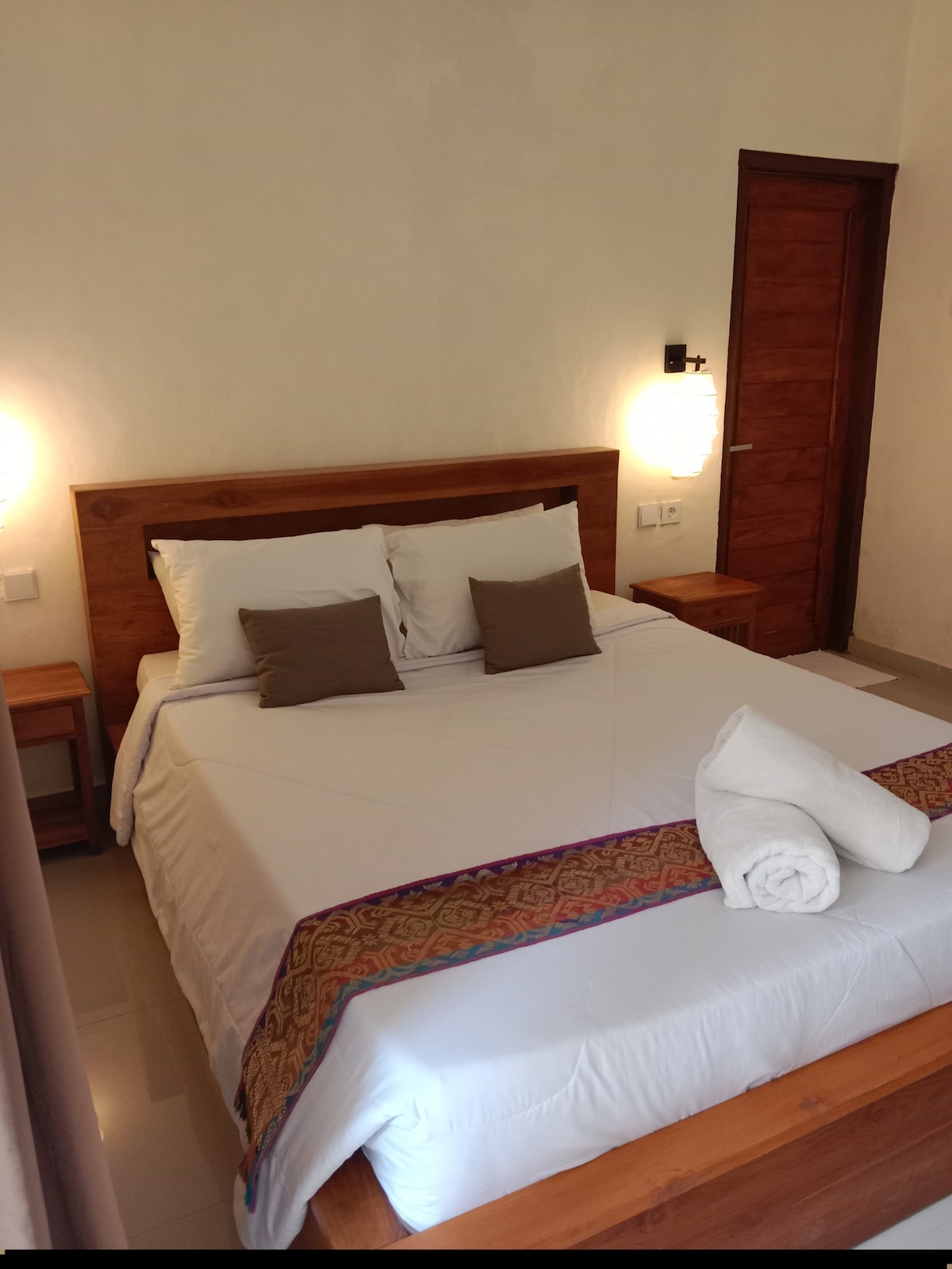 आमचे लॉज बीचपासून फक्त 2 मिनिटांच्या अंतरावर असलेल्या कॅन्डिडासा या सुंदर गावामध्ये आरामदायक सुट्टी ऑफर करते! आमचे सुपीरियर फॅमिली रूम्स दोन बेडरूम्सचे युनिट्स आहेत जे चार लोकांपर्यंत बसू शकतात. कृपया लक्षात घ्या की या रूम्स दुसर्या मजल्यावर आहेत. तुम्हाला अधिक बेड्स हवे असल्यास, आम्हाला विचारा! ब्रेकफास्ट समाविष्ट आहे. टीपा: - भाड्यामध्ये 4 पॅक्स आणि ब्रेकफास्टचा समावेश आहे - अतिरिक्त बेड 150,000 Rp आहे ज्यामध्ये ब्रेकफास्ट समाविष्ट आहे.
