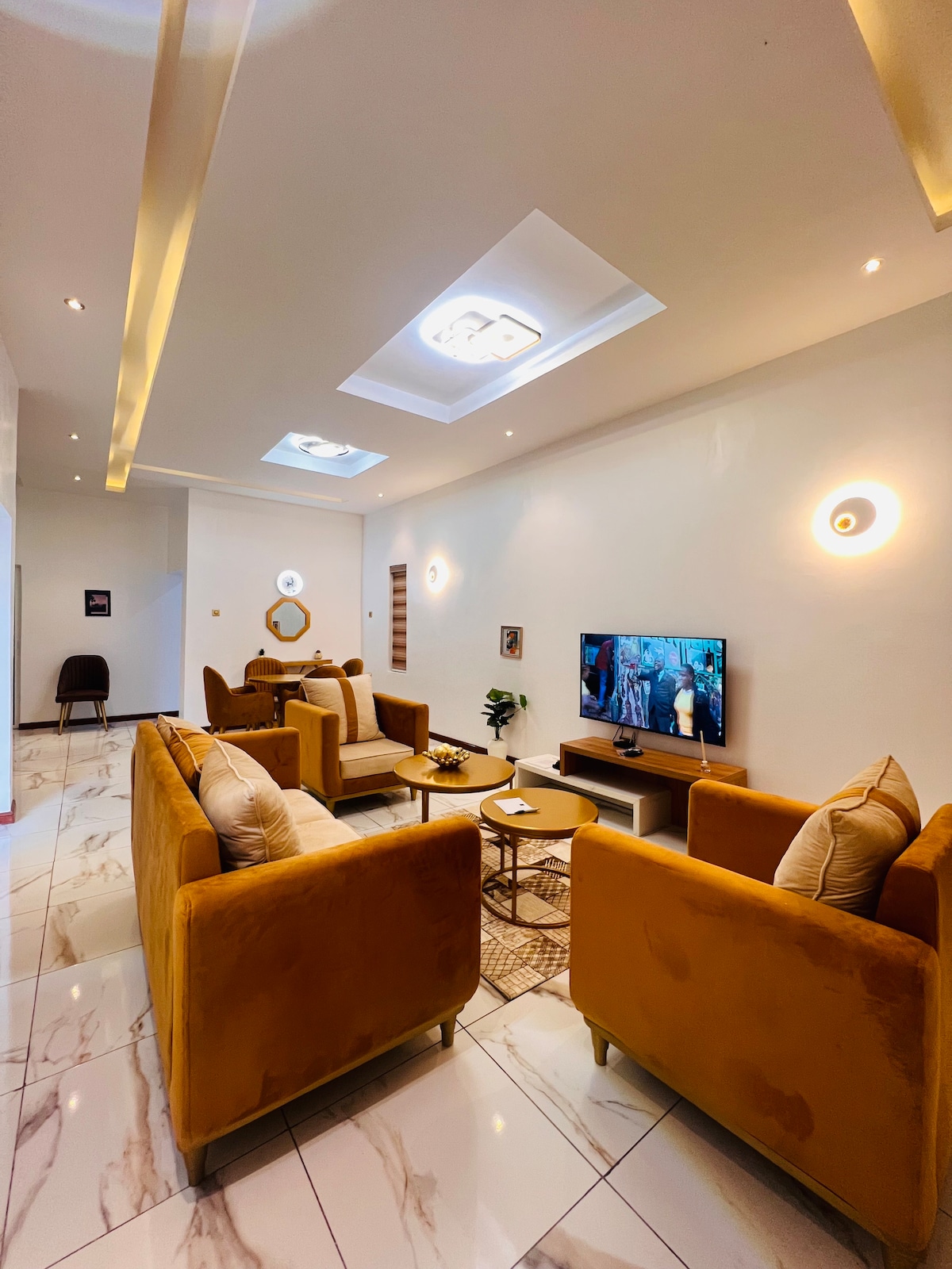 A place that takes into account your comfort, security, style and convenience. The 247 City Apartment property consist of a fully furnished 2 bedroom flat and a fully furnished 1 bedroom flat with all the amenities of a modern house. Self contained washroom and toilet, furnished kitchen, available DSTV services, fridge, Stylish sitting and bedroom, Overhead water tank supplying water, large compound space for parking and mini events. This poses to offer much value than described.