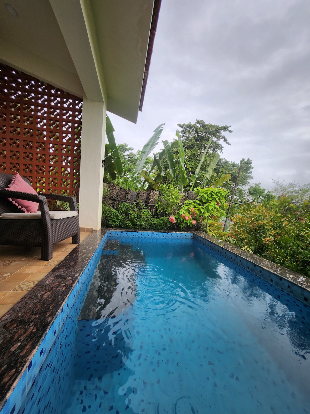 Surrounded by the beautiful verdant hills, accompanied by the fresh Sahyadri ranges stream running its edge offers a blissful sanctuary away from the chaos of urban life. At our quiet place, you are embraced by the rustling of leaves, the melodious bird calls. The unique, warm-toned, earthy finishes complement whitewashed walls to create a calm atmosphere. Make the most of the tropical weather spend your day floating in pool, walking barefoot on the lush, beautifully manicured lawn.