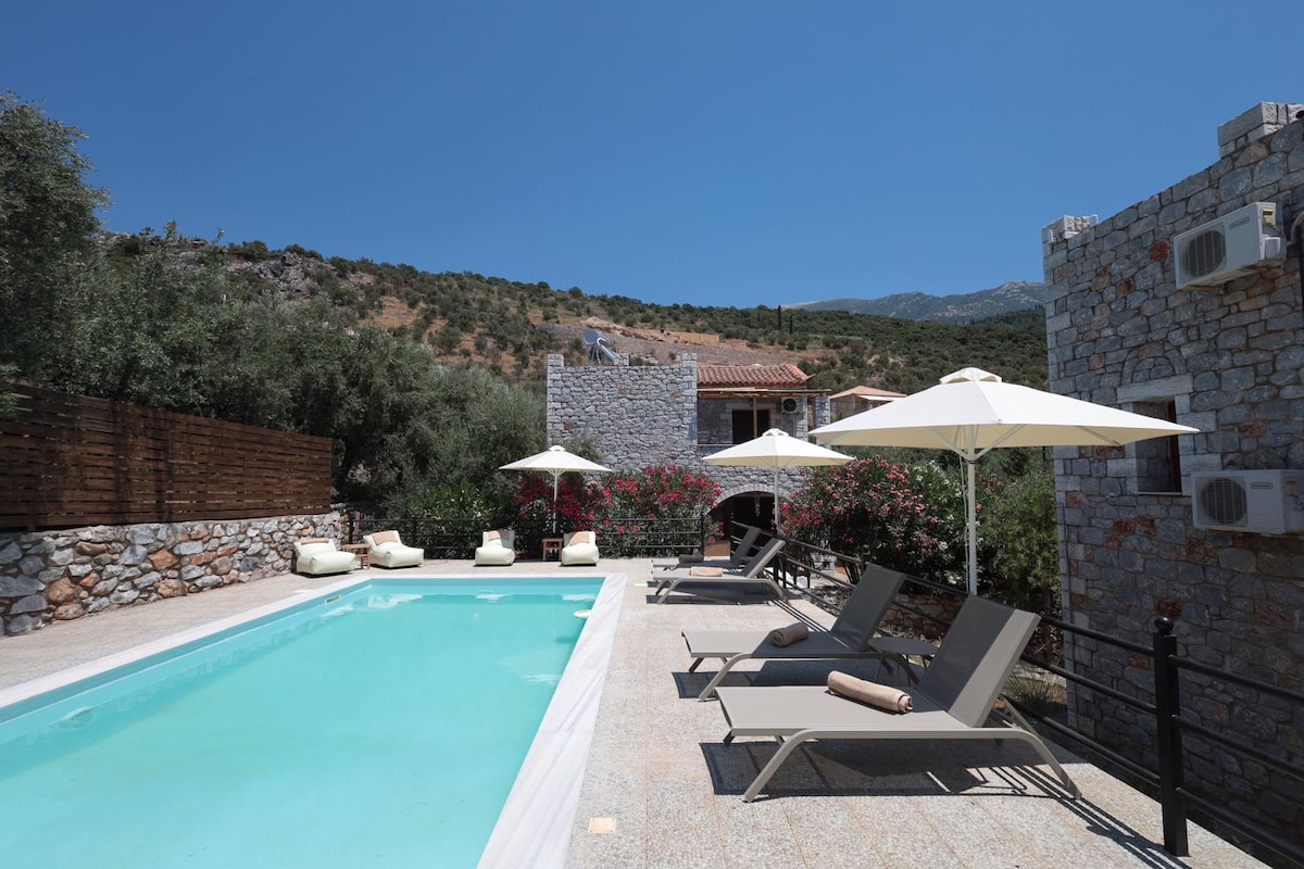 तैगेटोस पर्वत आणि भूमध्य समुद्राच्या दरम्यान वसलेल्या मणीमधील TSAPINI मध्ये तुमचे स्वागत आहे. येथे, जुन्या ऑलिव्हच्या झाडांच्या मध्यभागी आणि बीचवर अगदी थोड्या अंतरावर, तुम्हाला शांतता आणि सौंदर्याचे आश्रयस्थान दिसेल. आमची नव्याने बांधलेली दगडी घरे तुम्हाला मणीची जादू अनुभवण्यासाठी अविस्मरणीय सुटकेसाठी आमंत्रित करतात. ~EOS~ वरच्या मजल्यावरील टेरेस तुम्हाला पर्वतांपासून समुद्रापर्यंतचे पॅनोरॅमिक दृश्य देते जिथे तुम्ही भूमध्य सूर्याचा आनंद घेऊ शकता किंवा ताऱ्यांच्या ब्लँकेटखाली आराम करू शकता.