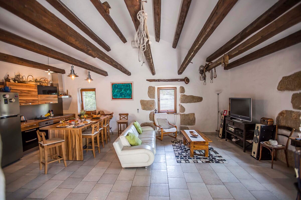 व्हिला एकांतात स्थित आहे आणि गावापासून सुमारे 200 मीटर अंतरावर आहे यात 19 व्या शतकाच्या सुरुवातीचे एक मूळ दगडी घर आणि एक नवीन भाग आहे ज्यामध्ये मोठ्या काचेच्या पृष्ठभागांचे वर्चस्व आहे जे घराच्या आतील बाजूस बाहेरील बाजूस जोडतात. घराच्या जुन्या भागात एक बेडरूम आहे आणि नवीन भागात स्वयंपाकघर आणि मोठ्या बाथरूमसह एक लिव्हिंग रूम आहे. घराच्या सभोवतालचा परिसर 1000 चौरस मीटर आहे. त्यावर आठ शतकानुशतके जुनी झाडे आहेत जी सूर्यापासून संरक्षण देऊ शकतात. तुमच्या वापरासाठी हंगामी भाज्यांच्या दोन बागा आहेत.