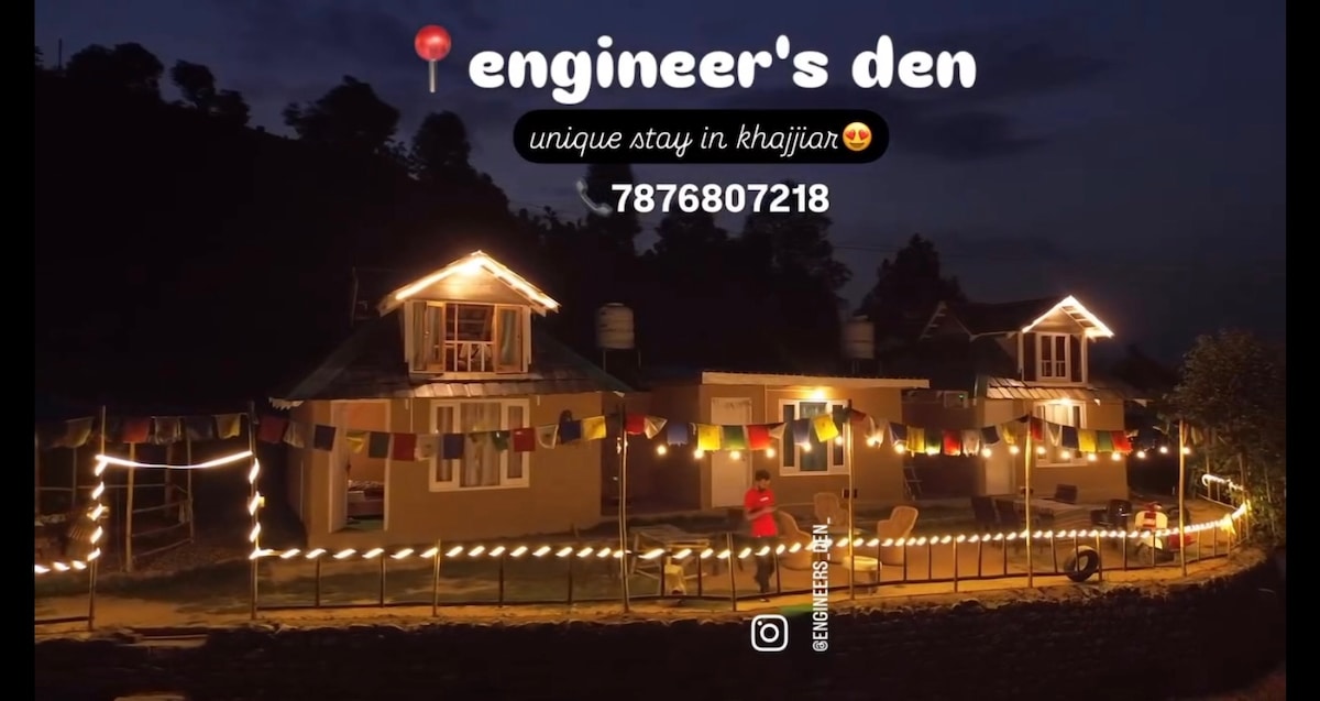 The wooden rooms here are built in a peaceful location on a quiet hilltop. With pine trees and the calm hum of nature in the air, the chirping of birds outside, it is a peaceful place which is good for work from home and preparing for exams.