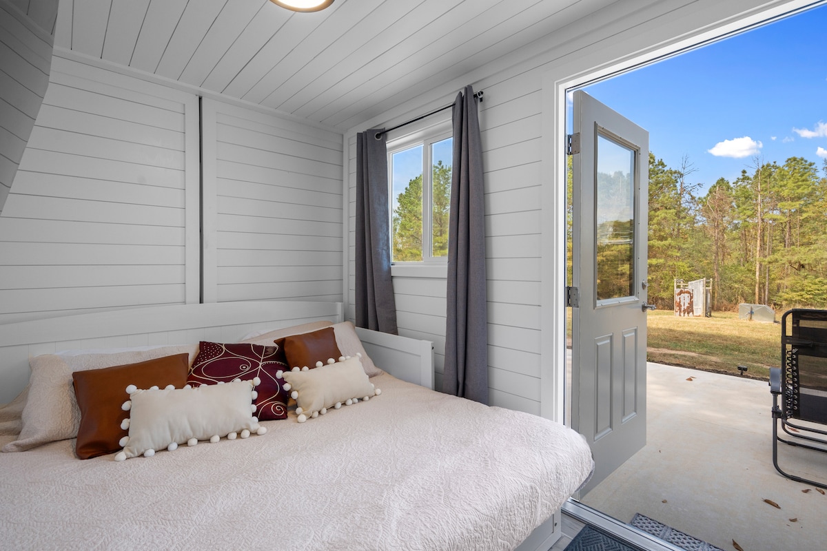 सुंदर 3 - एकर लाकडी सेटिंगमध्ये ठेवलेल्या या आरामदायक रिट्रीटचा आनंद घ्या. ही जागा वर्षभर एक आदर्श व्हेकेशन स्पॉट ऑफर करते. प्रॉपर्टीवर स्थित एक खाजगी तलाव आहे. मासेमारीला परवानगी आहे, फक्त कृपया पकडा आणि सोडा. तुमच्या विश्रांतीसाठी, फायरपिट आणि ग्रिलसाठी प्रदान केलेले, सूर्यप्रकाशात दीर्घ दिवसानंतर बार्बेक्यू आणि लाऊंजिंगसाठी आदर्श. किंवा अजिबात स्वयंपाक करू नका आणि आमच्या स्थानिक रेस्टॉरंट्स आणि शॉपिंगचा आनंद घ्या.