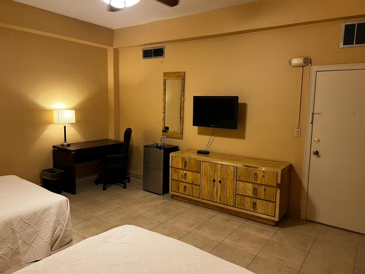 Airbnb न्युवो लॅरेडोमध्ये अधिक मध्यवर्ती आहे. Aceso सह ब्रिज 1 पासून लॅरेडो आऊटलेट्सपर्यंत 5 मिनिटांच्या अंतरावर. हॉटेलपासून लगेचच सुविधा स्टोअर्स आणि फार्मसीचा ॲक्सेस. 24 - तास रिसेप्शनिस्ट, तुमच्या सुरक्षिततेसाठी वैयक्तिक पार्किंग. रूममध्ये हे समाविष्ट आहे: दोन डबल बेड्स सिंगल प्रायव्हेट बाथरूम एअर कंडिशनिंग / हीटिंग वायफाय खाजगी पार्किंग जागा 24 तास रिसेप्शन लिफ्ट डाउनटाउन / प्लाझा हिडाल्गो /फार्मसीज आणि टॅक्सिसचा त्वरित ॲक्सेस