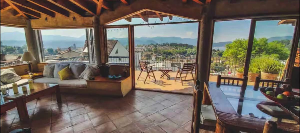 Despierta con una vista espectacular al lago y disfruta de una acogedora cabaña dentro de un conjunto de 4 cabañas, con alberca climatizada, terraza y área de fogata. Ideal para parejas, familias y amigos que buscan relajarse a solo 10 minutos del centro de Valle de Bravo. Y lo mejor… ¡somos pet friendly! 🐾 Lo que más disfrutarás Vista al lago 🌅 Alberca climatizada compartida 🏊 Área de fogata y asador para carne asada 🔥 Espacios al aire libre perfectos para descansar y convivir 🌳