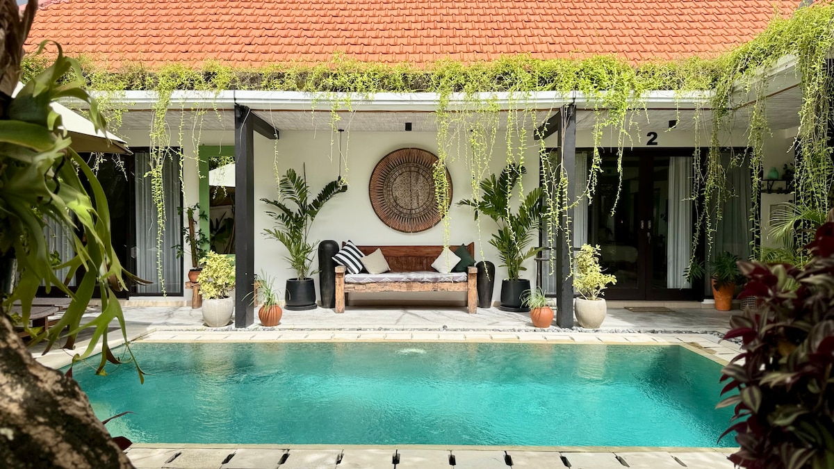 एका लक्झरी व्हिला तुमच्या बालीच्या वास्तव्याला एक अपवादात्मक अनुभव बनवण्यासाठी डिझाइन केलेल्या विचारपूर्वक अतिरिक्त गोष्टींसह शांतता आणि शैलीचे आश्रयस्थान ऑफर करते. एका दिवसाच्या शॉपिंग, स्विमिंग किंवा प्रेक्षणीय स्थळांनंतर, सूर्यप्रकाशात किंवा आरामदायक पाण्याच्या वैशिष्ट्यासह तुमच्या खाजगी पूलमध्ये आराम करा. हे चांगले जीवन आहे! * बीचवर चालत जा * दैनंदिन साफसफाई * लिव्हिंग एरिया आणि दोन्ही बेडरूम्समध्ये स्मार्ट टीव्ही * गरम आणि थंड पिण्याचे पाणी डिस्पेंसर * सामान ड्रॉप - ऑफ सुरक्षित स्टोरेज