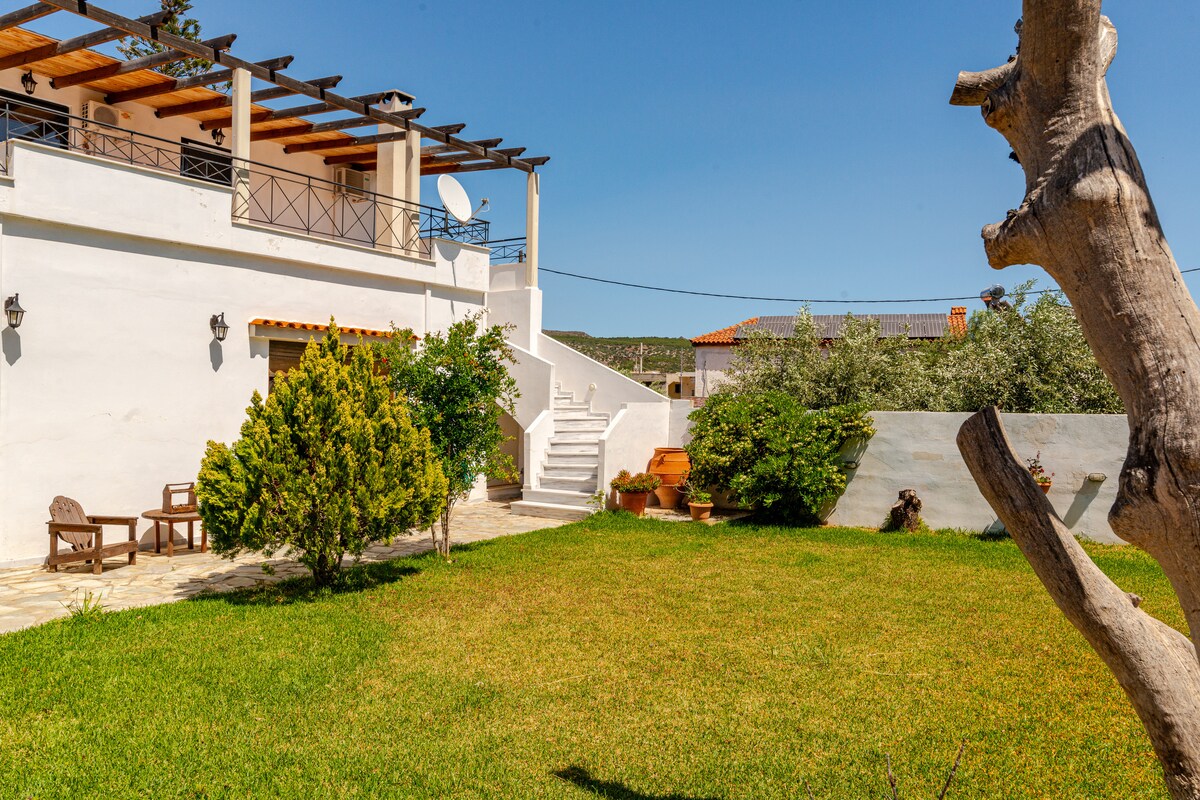 बीच हाऊस समुद्राचे दृश्य आणि सुंदर सूर्यास्तासह एका खाजगी गार्डनने वेढलेले आहे आणि बीच चालण्याच्या अंतरावर आहे. कोणत्याही गेस्ट्सचे स्वागत करण्यासाठी आणि त्यांना ग्रीक वास्तव्याचा आनंद घेऊ देण्यासाठी एक अतिशय शांत आणि शांत वातावरण तयार आहे. गेस्ट्स संपूर्ण घर आणि बागेचा आनंद घेऊ शकतात आणि सूर्यप्रकाशात आणि समुद्राच्या दृश्यांखाली आराम करू शकतात. एक आऊटडोअर बार्बेक्यू क्षेत्र देखील आहे.