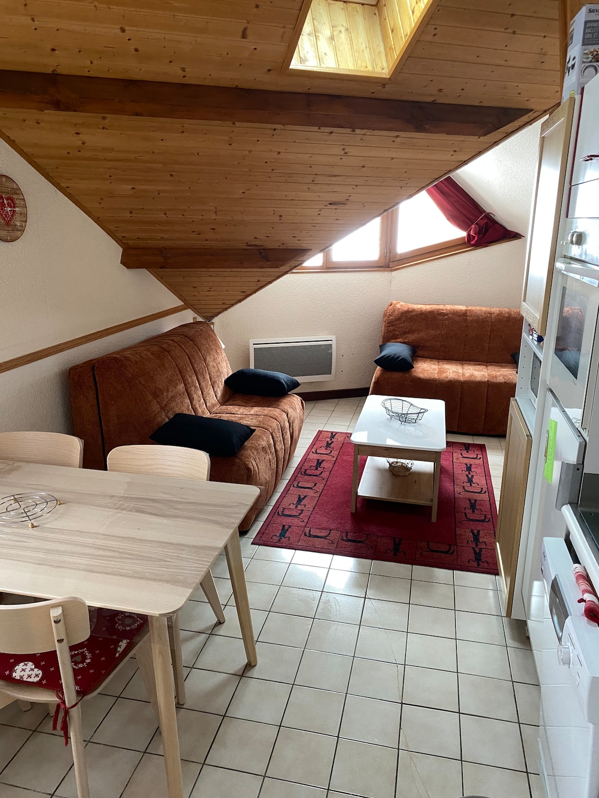 लेलेक्समधील आमच्या मेझानिन स्टुडिओमध्ये आम्ही तुमचे स्वागत करतो. आमचे लहान "पर्वतांमधील लॉफ्ट" 4 (मुलांसह जास्तीत जास्त 6) साठी अद्भुत वास्तव्यासाठी आवश्यक असलेल्या सर्व आरामदायी गोष्टींनी सुसज्ज आहे: सुसज्ज किचन, वॉशर - ड्रायर तुमच्या विल्हेवाटात आहे, टीव्ही पाहण्यासाठी एक आरामदायक सोफा बेड, एक बाल्कनी …. निवासस्थान डिजिकोडद्वारे सुरक्षित आहे आणि एक स्की लॉकर तुमच्या हातात आहे. अपार्टमेंट जवळपासच्या सर्व सुविधांसह एक उत्तम लोकेशनमध्ये आहे.
