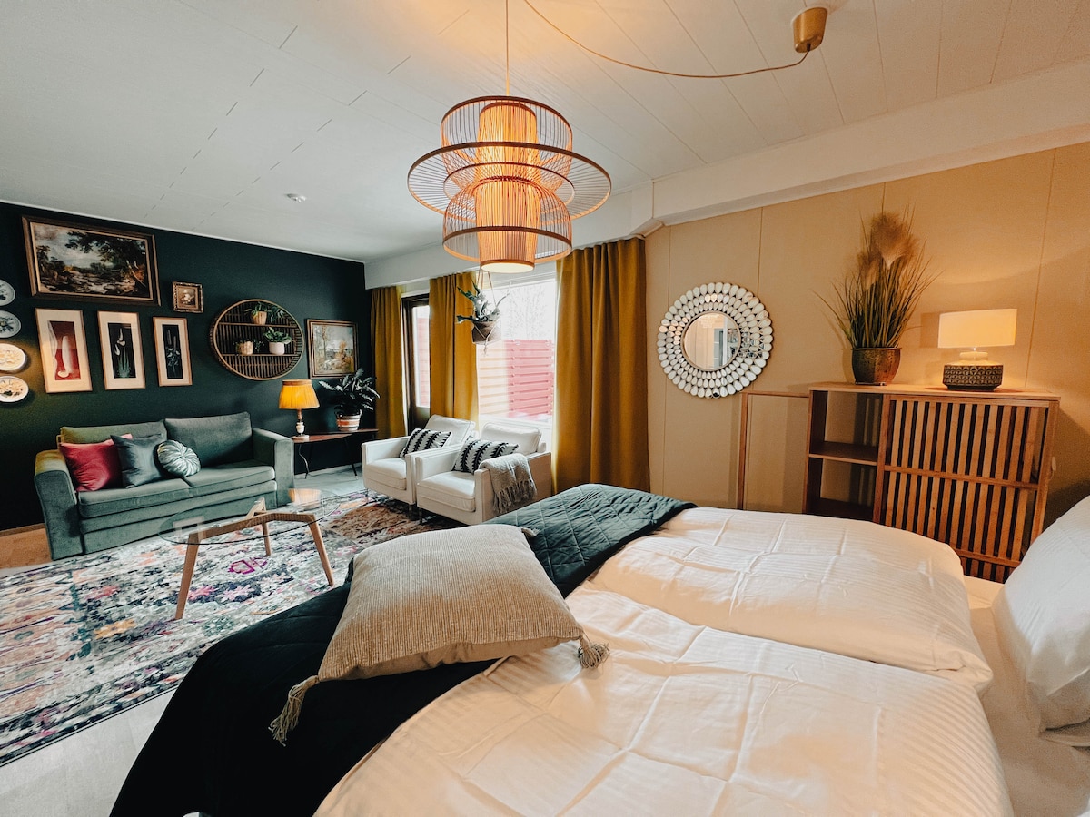 एक किंवा दोनसाठी वैविध्यपूर्ण अपार्टमेंट, मायनमॅकीमधील होमी अपार्टमेंट. आवश्यक असल्यास, दोन मुले सोफा बेडवरून बेड बनवू शकतील. अपार्टमेंट एका लहान लक्झरी लाँगिंगसाठी खूप योग्य आहे, कामाच्या ट्रिपसाठी एक शांत रिमोट वर्कस्पेस. E8 वर प्रवास करताना Arno1 एक उत्तम लोकेशनवर आहे आणि गावातील सर्व सेवा उपलब्ध आहेत. शांत लोकेशनमुळे रात्रीची चांगली झोप मिळते. एर्नो 1 आऊटडोअर हॉट टब, 55"टीव्ही, हाय स्पीड 5 जी वायफाय सबस्क्रिप्शन आणि सर्व घरगुती वस्तूंनी सुसज्ज आहे.