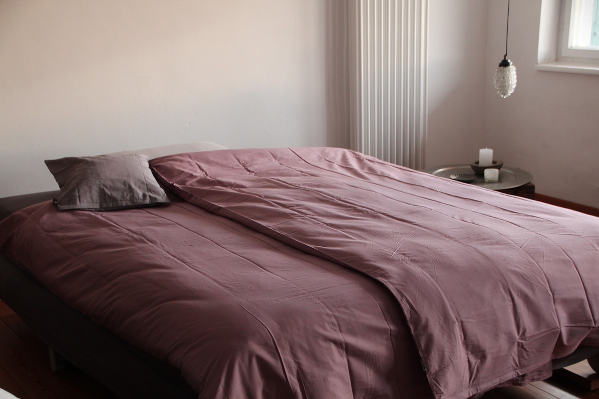 Schlafzimmer in japanischem Stil: feste Matratze 160x200 cm auf Tatami-Matten (ohne Lattenrost), die auf einem 35 cm erhöhten Podest liegen. Kleines Bad mit WC und Dusche, komplett eingerichtete Küche mit Gasherd und Backofen (ohne Spülmaschine, keine Mikrowelle), Wohnzimmer mit Sofa, schnelles WiFi/WLAN, kleiner Fernseher, Terrasse mit Tisch und Stühlen. Liegestühle im Garten dürfen mitbenutzt werden. Für kleine Gäste: Babynest oder Matratze zum Anlegen, Hochstuhl, etc. siehe Bilder im Inserat.