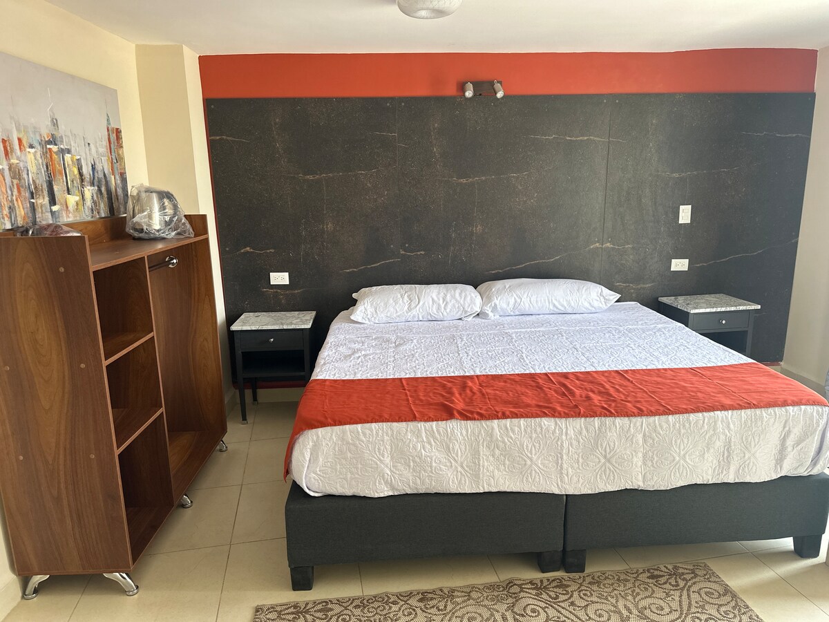 Nuestras habitaciones cuentan con acabados modernos, excelente limpieza y amenidades esenciales para una experiencia confortable. Algunas categorías incluyen jacuzzi privado, ideal para relajación y momentos especiales. El hotel ofrece wifi rápido, TV con plataformas, ropa de cama de calidad, check-in ágil y ubicación estratégica cerca de zonas comerciales, avenidas principales y puntos de interés de la ciudad.