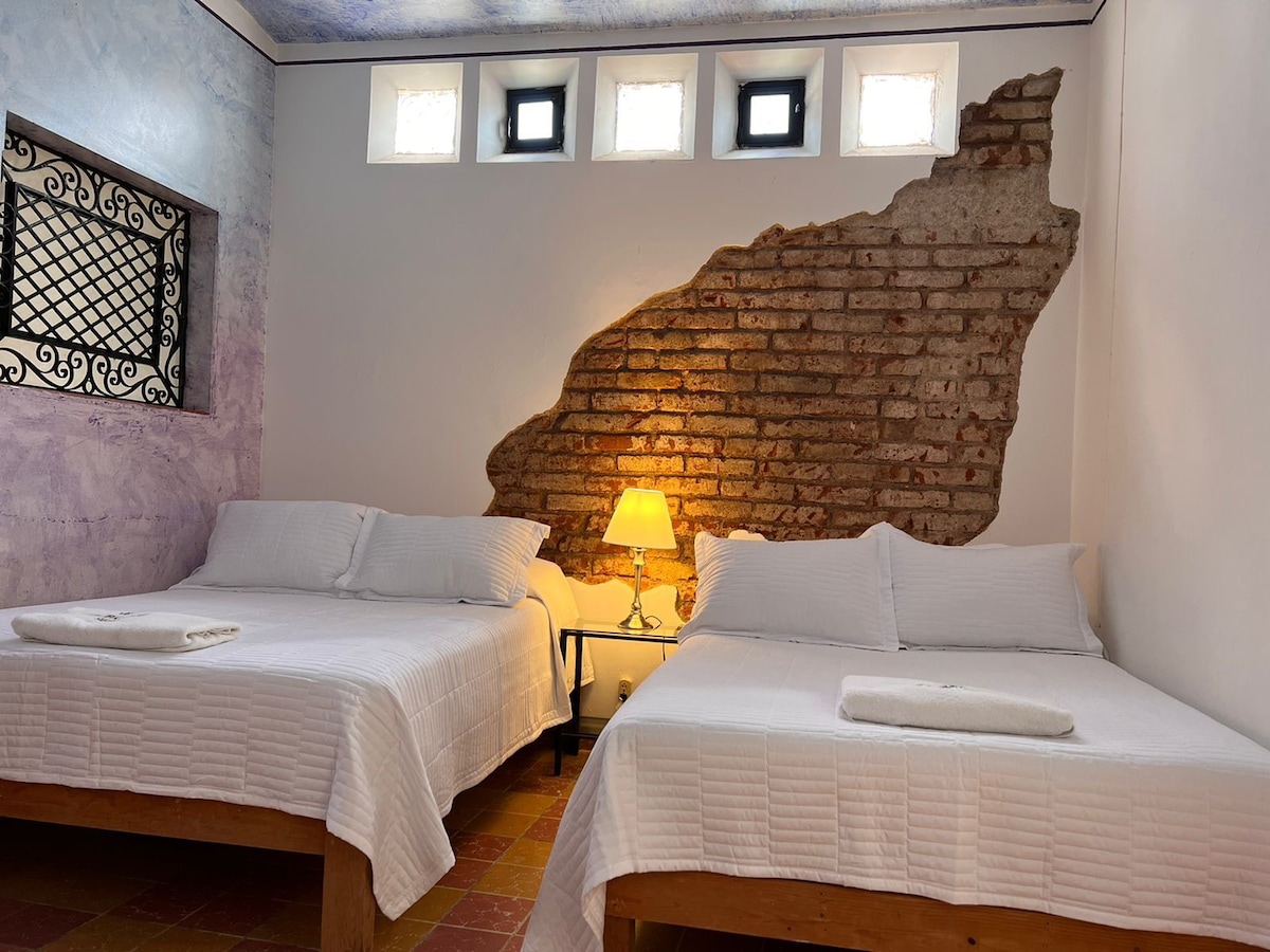आर्को दे ला कॅलझाडाच्या समोर, विनामूल्य पार्किंगसह सुंदर आणि मध्यवर्ती हॉटेल. लिओन, गुआनाजुआटो शहराच्या ऐतिहासिक मध्यभागी असलेल्या विश्रांतीच्या जागेचा आणि स्मारकांचा आनंद घ्या, जिथे तुम्ही सहजपणे पोलिफोरम कल्चरल (द्विशतकीय थिएटर), कन्व्हेन्शन सेंटर किंवा पादत्राणे आणि ग्लोब फेस्टिव्हलच्या मोठ्या शॉपिंग सेंटरमध्ये जाऊ शकता, हे सर्व या अनोख्या आणि स्टाईलिश घरात राहण्यासाठी आहे. आमच्याकडे प्रत्येक रूममध्ये वायफाय, टीव्ही, A/C आणि खाजगी बाथरूम आहे.