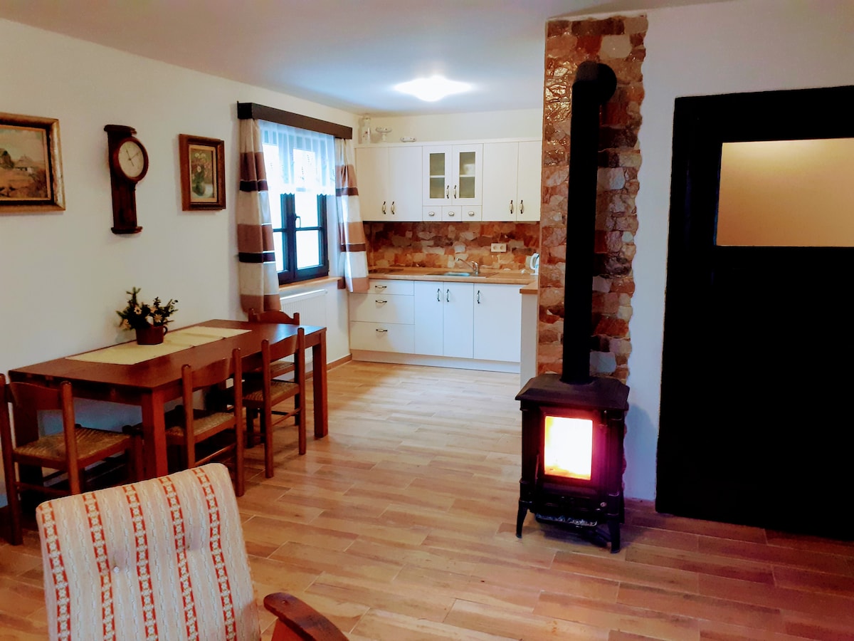 अपार्टमेंटची कल्पना 2+ केके आणि हॉलवे आहे. पूर्णपणे सुसज्ज किचन. बेडरूममध्ये डबल बेड + अतिरिक्त बेड. लिव्हिंग रूममध्ये सोफा बेड. बाथरूममध्ये शॉवर, टॉयलेट आणि सिंक आहे. ही जागा फक्त कारद्वारे ॲक्सेसिबल आहे. NMNM 5 किमी, वायसोसिना अरेना 7 किमी. पार्किंगची जागा, बाईक्स साठवण्यासाठी गॅरेज, आऊटडोअर फायर पिट आहे.