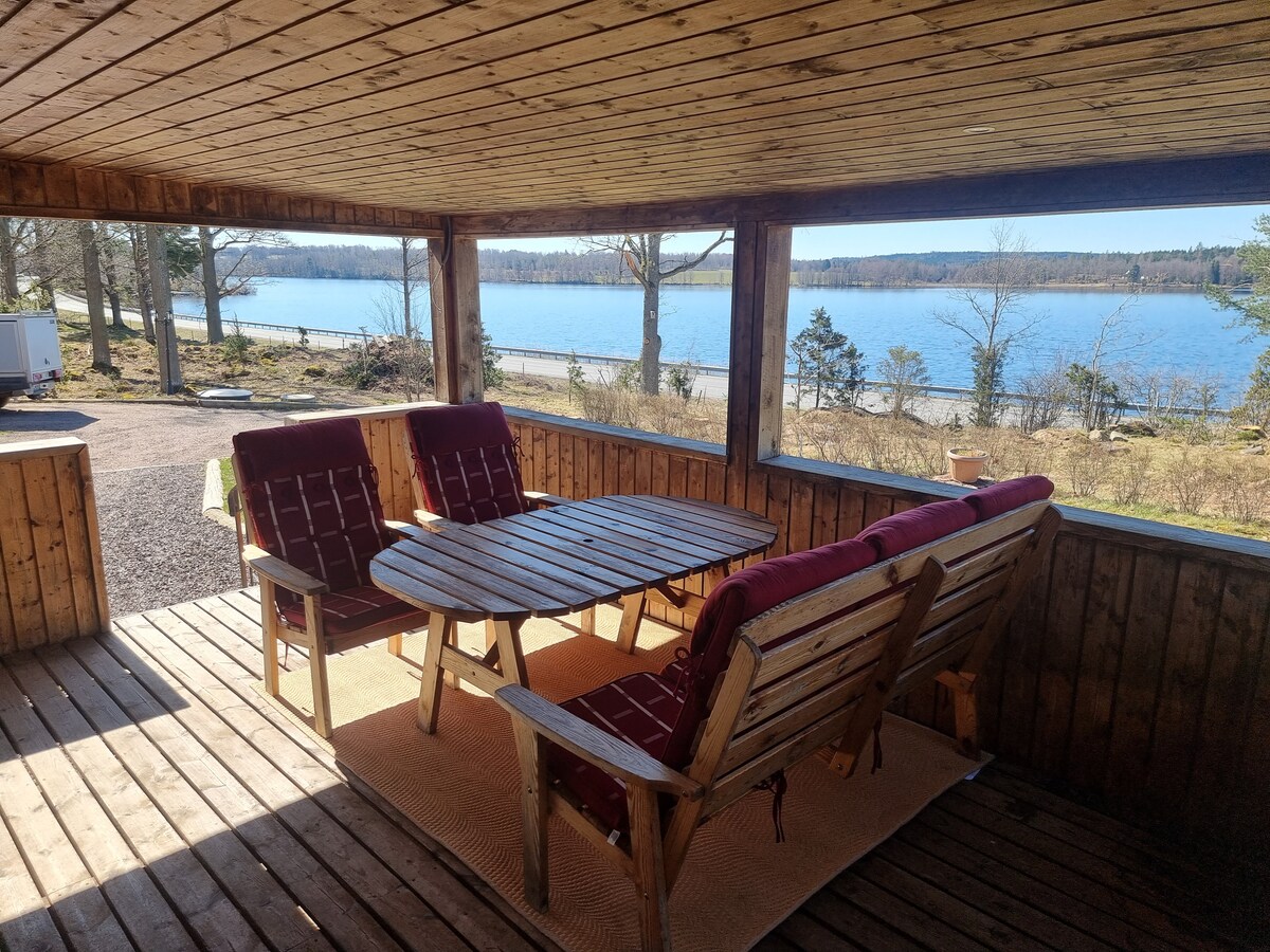 Stuga utanför Jönköping vid sjö.