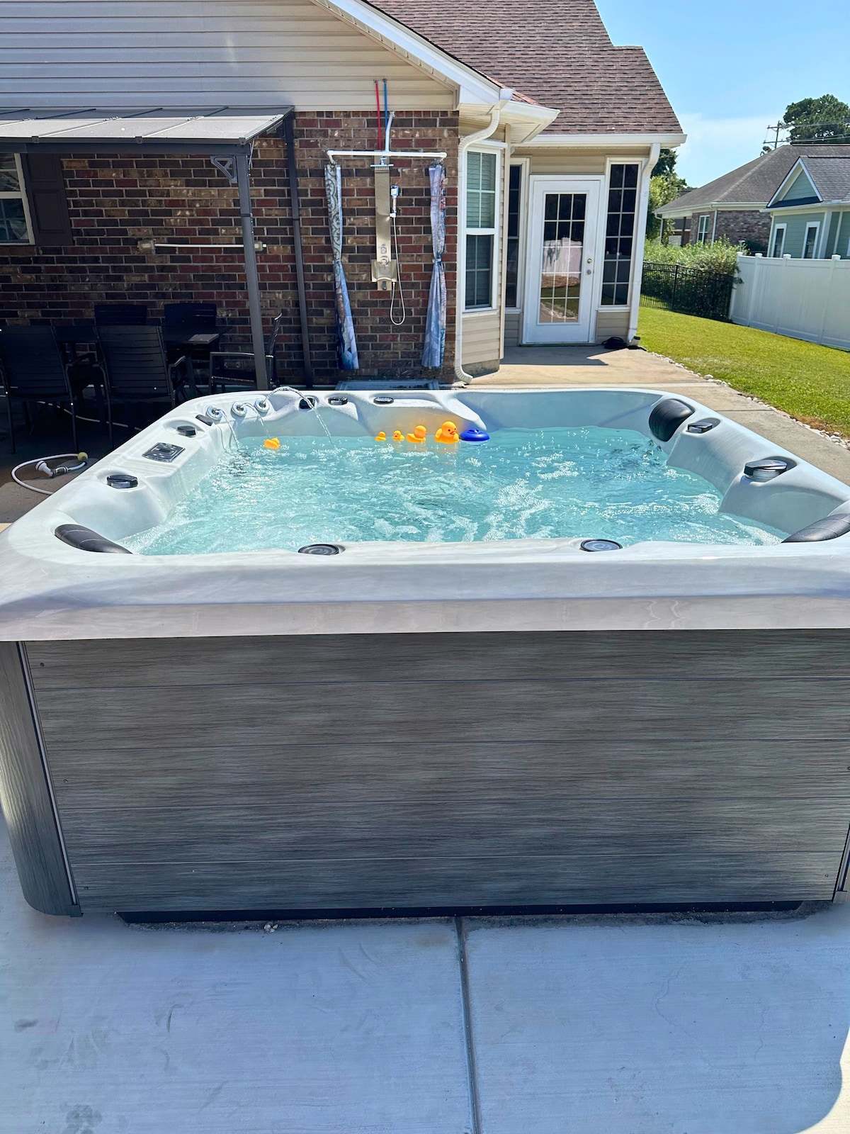 Private hot tub and heated saltwater pool retreat