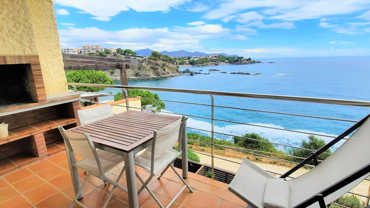 Llançà आणि पोर्टो डी ला सेल्वा दरम्यान कॅमिनो डी रोंडाच्या पायथ्याशी सुंदर सीफ्रंट अपार्टमेंट. नेत्रदीपक दृश्यांसह 7 मीटर डाग असलेल्या - काचेच्या खिडक्या आणि काऊ डेल लोबो कॉह आणि त्याच्या क्रिस्टल स्पष्ट पाण्याचा थेट ॲक्सेस. कारने Llançà गावापासून 3 मिनिटांच्या अंतरावर किंवा कॅमिनो डी रोंडावर 3 किमी चालणे आणि कॅडॅकपासून 20 किमी, पर्पनीयापासून 60 किमी आणि बार्सिलोनापासून 150 किमी अंतरावर आहे. खाजगी आऊटडोअर पार्किंग ज्याद्वारे अपार्टमेंटला आऊटडोअर जिन्याने ॲक्सेस केले आहे.