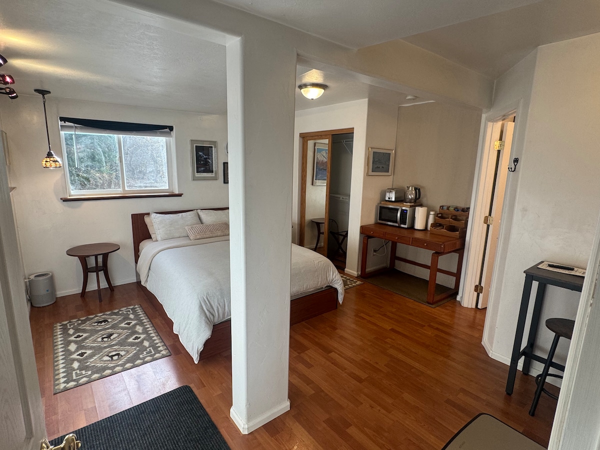 Settle down in a light filled, private, comfy guesthouse w/great views safe & secure privacy on wooded upper hillside w/parks/hiking, skiing, wildlife. Easy drive to airport/downtown. Ideal for business/leisure visitors. 5G WIFI. Mild temps & snow make Anchorage a winter playground. Sunsets & views from a private deck/Family friendly with plenty of room to roam. Make wonderful memories. Open dates March 29-April 17, Sept 7-18, Sept 23-Oct 31 & select open dates in Nov/Dec