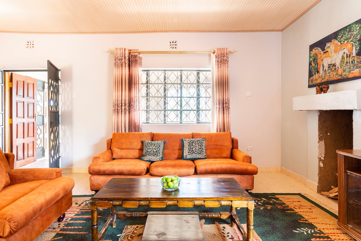 इथि मैदानाजवळील मानझोनी वन्यजीव इस्टेटच्या मध्यभागी वसलेले, 5 एकरवरील एक शांत आणि सुंदर होमस्टे आहे. हे अद्भुत गेम ड्राईव्हज, अप्रतिम वॉक, धावणे आणि सायकलिंग, पक्षी निरीक्षण आणि धरणांमध्ये सूर्यप्रकाश देणारे ऑफर करते. आराम करा आणि व्हरांड्यातून शांतता आणि सौंदर्याचा आनंद घ्या, ल्युकेनिया हिल, ओल डोन्यो साबुक आणि माउंट केनियाचे दृश्ये घेऊन श्वासोच्छ्वासाची पार्श्वभूमी घ्या. नैरोबीपासून फक्त 45 मिनिटांच्या अंतरावर असलेल्या गेटअवेच्या या रत्नात शहराच्या गर्दीपासून दूर जा.