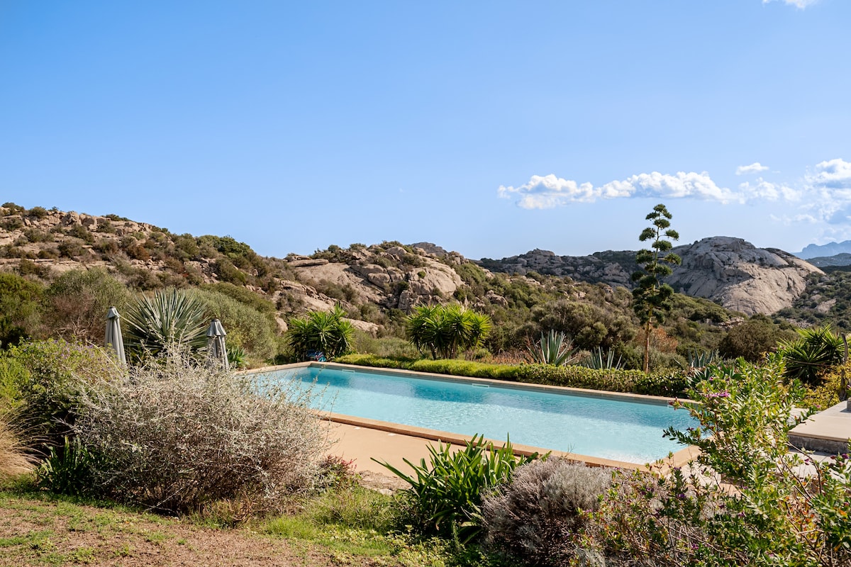 सर्व गॅलुरा आणि सार्डिनियाच्या सर्वात सुंदर जागांपैकी एकामध्ये स्थित, समुद्र आणि बोनीफेसिओच्या सामुद्रधुनीकडे दुर्लक्ष करून, व्हिला जॉन्सन दिवसाचा प्रत्येक क्षण समुद्राच्या जवळ संपर्कात राहण्याची आणि आमच्या प्रॉपर्टीने ऑफर केलेल्या तीन अद्भुत टेरेसवर आराम करताना भव्य पहाटे आणि सूर्यास्ताचा आनंद घेण्याची संधी देते. ज्यांना संपूर्ण गोपनीयता आणि निसर्गाशी थेट संपर्क साधायचा आहे त्यांच्यासाठी एक अनोखे आणि उच्च दर्जाचे लोकेशन