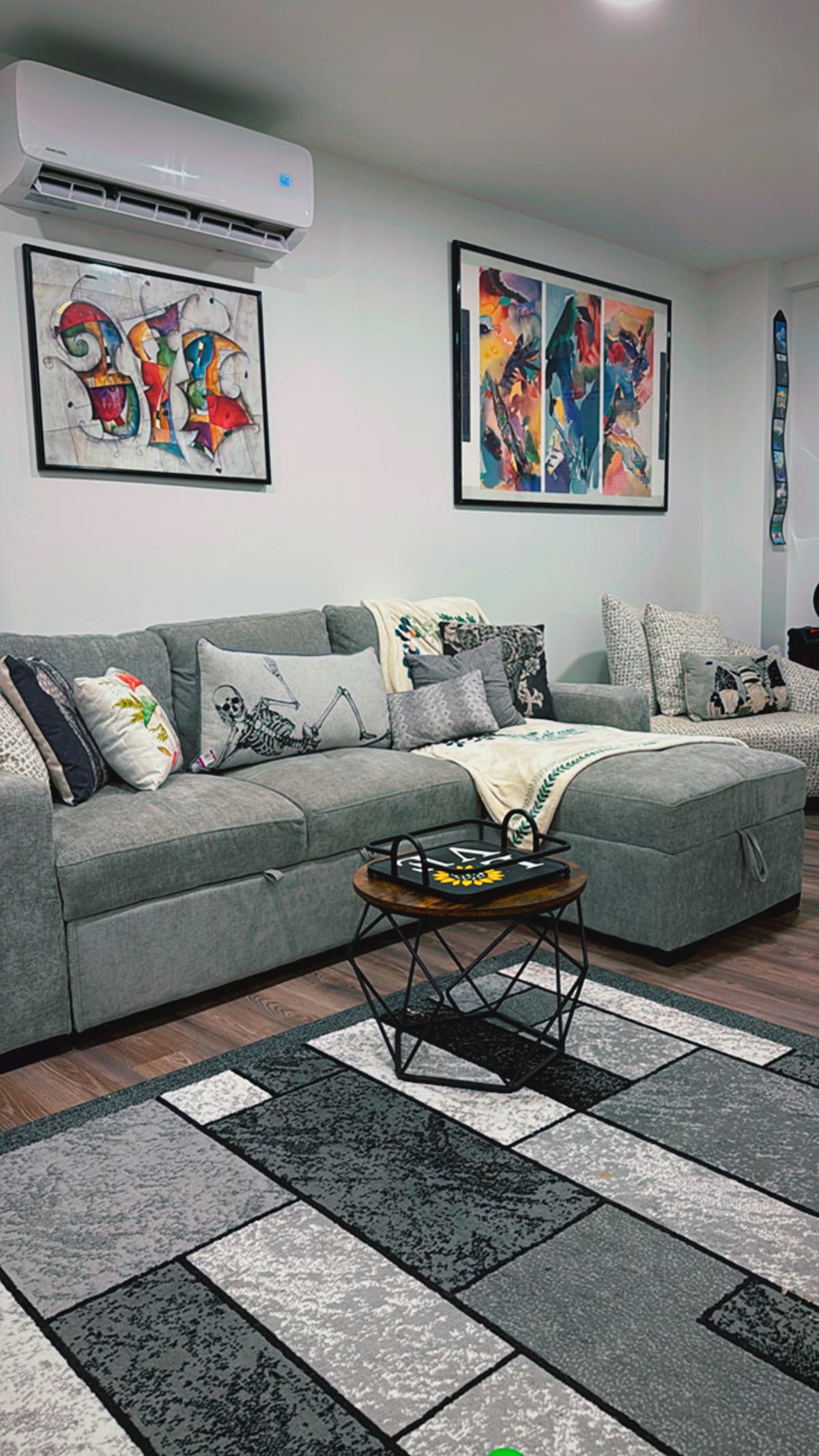 पूर्ण बेसमेंटमध्ये 3 बेडरूम्स आहेत ज्यात प्रत्येक रूममध्ये फ्लॅटस्क्रीन टीव्ही आहे. अंदाजे 2000 चौरस फूट. धूम्रपान नाही, पाळीव प्राणी नाहीत. पूर्ण बाथरूम आणि पूर्ण - आकाराचे, स्टॅक करण्यायोग्य वॉशर आणि ड्रायर असलेली स्वतंत्र पावडर रूम. 70 इंच फ्लॅटस्क्रीन टीव्ही, आसपासचा आवाज आणि इलेक्ट्रिक फायरप्लेस असलेली लिव्हिंग रूम. ओव्हन, स्टोव्ह टॉप, मायक्रोवेव्ह, रेफ्रिजरेटर, सिंक आणि क्यूरिग कॉफी मशीनसह किचन. पिंग - पोंग टेबल, मिनी - हुप शूट गेम, 4K ब्लू - रे प्लेअर असलेले डीव्हीडीज, बास्केटबॉल हुप. आऊटडोअर फायर पिट. स्वतःच्या पार्किंगसह खाजगी प्रवेशद्वार.