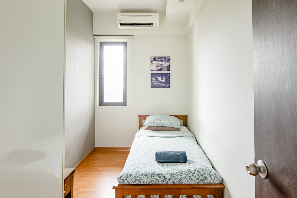 शांतीपूर्ण शेअर केलेल्या काँडोमधील सिंगल बेडरूम w स्कायपूल