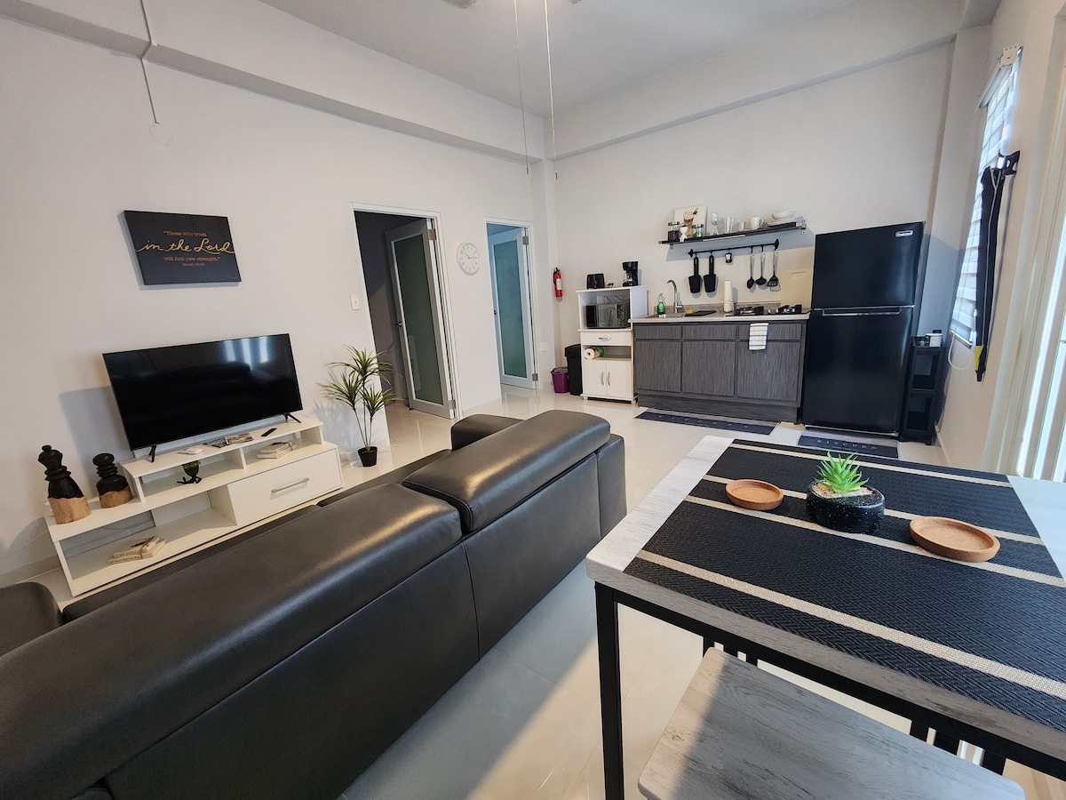 मध्यवर्ती ठिकाणी असलेल्या या स्टाईलिश अनुभवाचा आनंद घ्या. एका जोडप्यासाठी योग्य पलायन. उत्तर बेटावरील अप्रतिम बीचजवळ: मार चिकिता, ला एस्पेरांझा, मनाटीचा लॉस ट्यूबॉस बीच आणि वेगा बाजा येथील 25 मिनिटांच्या पोर्टो न्युवो बीचवर. रुग्णालये, विद्यापीठे, फार्मसीज, मॉल, कॅसिनो आणि रेस्टॉरंट्सजवळ. दूरवर कामासाठी योग्य जागा. अपार्टमेंटमध्ये लहान लिव्हिंग वाई/ टीव्हीआणि डायनिंग एरिया, सुसज्ज किचन, पूर्ण बेड आणि बाथरूमसह एक बेडरूम, वर्कस्टेशन, वायफाय, कपाट आहे.
