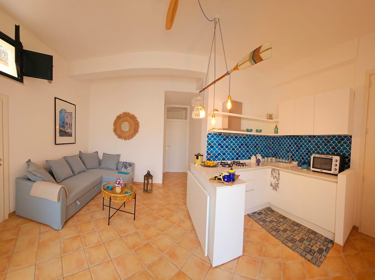 व्हिन्टेज नॅचरल स्टाईलमध्ये सुसज्ज असलेल्या या घरात किचनसह स्टुडिओ आणि शॉवरसह बाथरूम आहे. अंगणाकडे पाहत असलेल्या गेटमधून ते ॲक्सेस केले जाते. हे अपार्टमेंट उज्ज्वल आहे, फविग्नानाच्या मरीनाकडे पाहत सांता कॅटरिनाच्या किल्ल्याकडे पाहत आहे आणि एअर कंडिशनिंगसह सुसज्ज आहे. किचनमध्ये नाश्ता आणि लहान जेवण तयार करण्यासाठी आवश्यक गोष्टी आहेत.