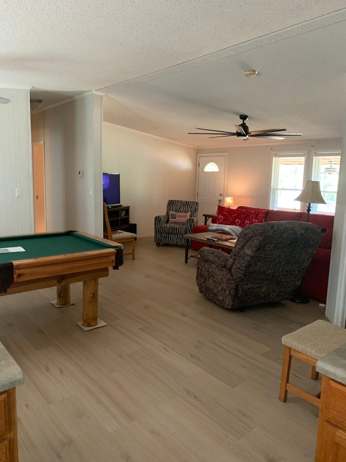 या उबदार गेटअवेच्या पोर्चवर शांतता आणि शांततेचा, थंड पेयांचा आणि सभ्य तलावाचा आनंद घ्या. पाईन आयलँड पॅराडाईज कॅडो लेकचे सुंदर दृश्ये देते. बसायची जागा, एक पिकनिक टेबल आणि सीलिंग फॅन्स एका खाजगी बोट डॉकवर आहेत आणि मासेमारीसाठी योग्य छेदनबिंदू आहे. खाजगी गेटअवेज आणि कौटुंबिक मेळाव्यासाठी एक उत्तम लोकेशन. मनोरंजनासाठी भरपूर जागा असलेले मोठे किचन. हे 3 बेडरूम आणि 2 बाथरूम घर 6 प्रौढांपर्यंत सामावून घेऊ शकते. संपूर्ण हाऊस जनरेटर.