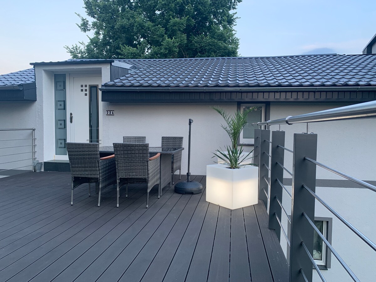 ग्रामीण भागात छप्पर टेरेस असलेले शांत अपार्टमेंट