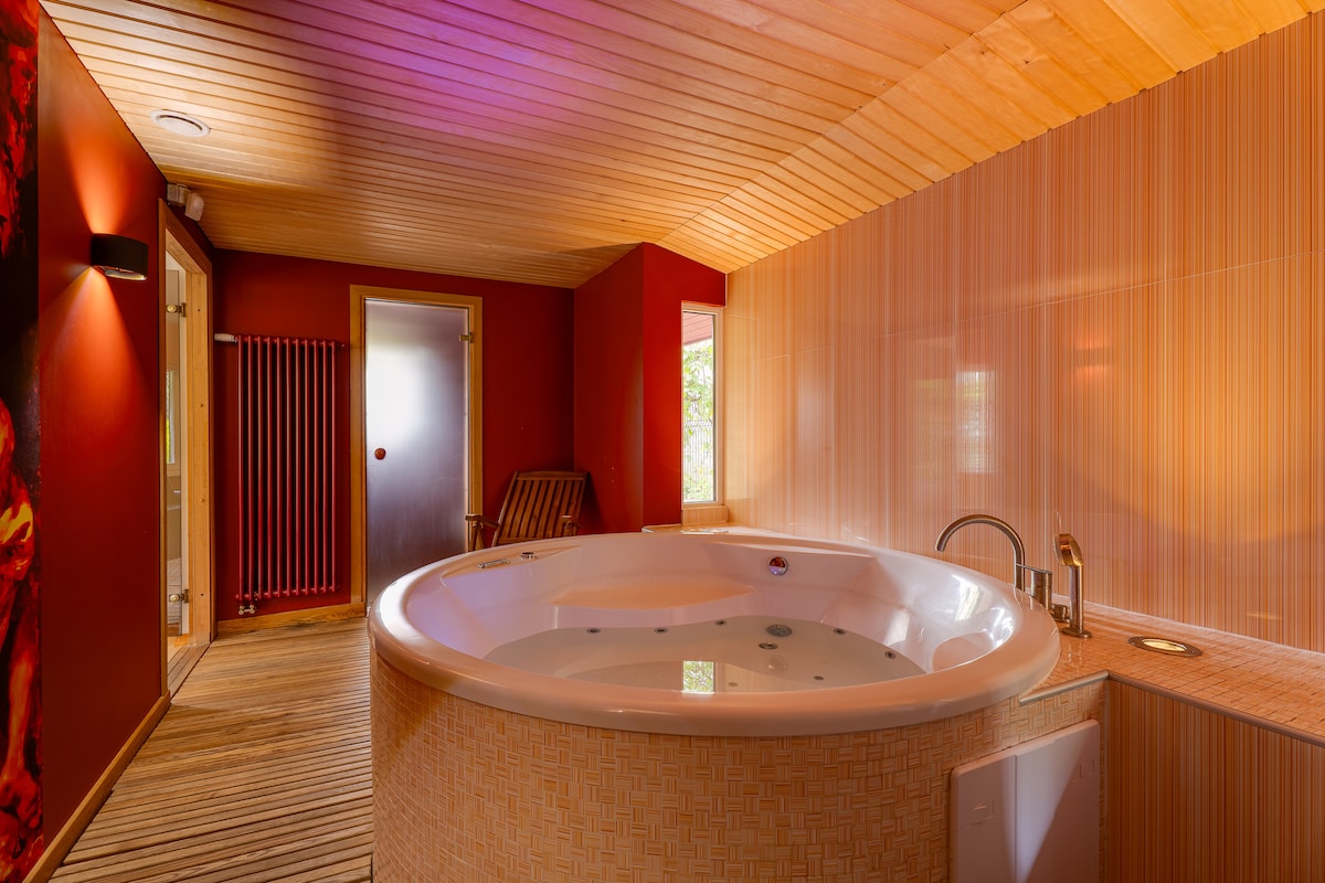 House with a terrace, hot tub, parking & backyard