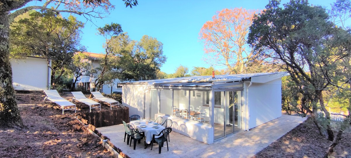 हिरव्या सेटिंगमध्ये, ट्रिपल ग्लेझिंगमध्ये, फ्रान्समधील सर्वात मोठ्या नैसर्गिक तलावापासून 800 मीटर आणि त्याच्या बाईक मार्गापासून (4.5 किमी) कारकन्स ओसेनच्या बीचपर्यंत जाते. माउबिसनच्या मध्यभागी 1 किमी अंतरावर खाजगी पार्किंगसह सुंदर निवासस्थान. निसर्गरम्य रिझर्व्हकडे जाणाऱ्या जंगलाकडे पाहणारी 1000 मीटर्सची बंदिस्त जमीन. अंगभूत बार्बेक्यू असलेल्या घराच्या सभोवताल 80 मीटर 2 टेरेस (मेरबाऊमध्ये). पाईनच्या झाडांच्या मध्यभागी 20 मीटर2 (मेरबाऊमध्ये) प्लॅटफॉर्म, होलम ओक्स, मिमोसास आणि स्ट्रॉबेरीच्या झाडांकडे पाहत आहे.