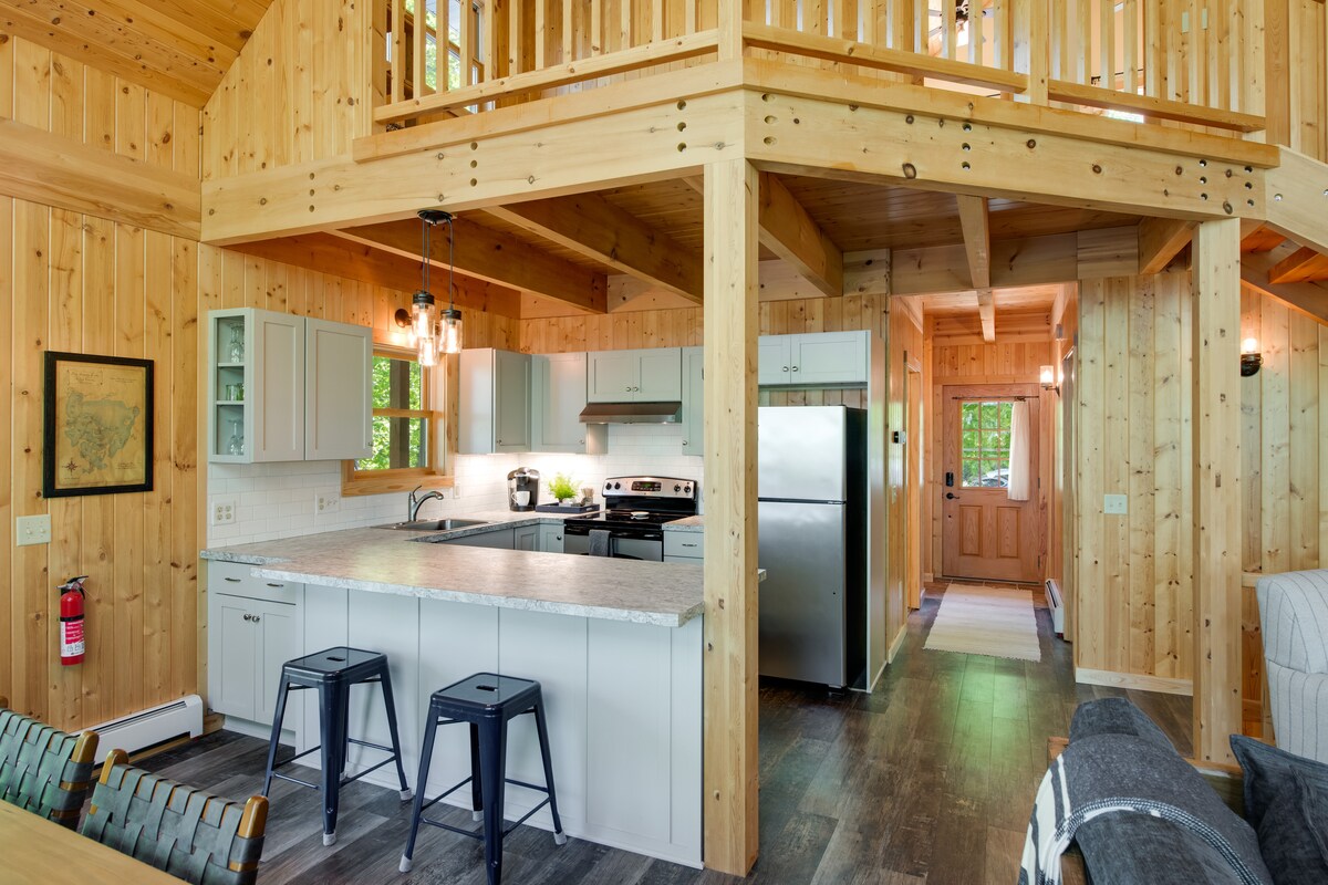 उर्सा मायनर केबिनमधील जंगलात पलायन करा. 2017 मध्ये बांधलेल्या या आरामदायी आणि शांत गेटअवेमध्ये संपूर्ण किचन, गंधसरुने झाकलेला शॉवर असलेले बाथरूम, इलेक्ट्रिक इन - फ्लोअर हीट, लाकडी स्टोव्ह, संपूर्ण उबदार पाईन साईडिंग आणि प्रशस्त स्लीपिंग लॉफ्टचा समावेश आहे. दरवाजाच्या अगदी बाहेर एक झाकलेले पोर्च, फायर पिट आणि पूर्णपणे स्टॉक केलेले जंगल आहे. तुमच्या वास्तव्यामध्ये तुमच्या दारापासून पायऱ्या सुरू करणाऱ्या शेकडो एकर खाजगी वुडलँडमधून जाणाऱ्या दहा किलोमीटरपेक्षा जास्त ट्रेल्सचा ॲक्सेस समाविष्ट आहे.