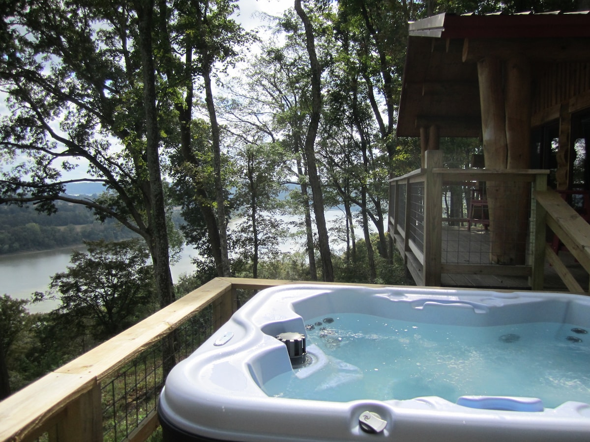 हॉक्स नेस्ट ही सर्व आधुनिक सुविधांसह नव्याने बांधलेली, अस्सल, हाताने तयार केलेली लॉग केबिन आहे. हे ओहायो नदी आणि शांत केंटकी फार्मलँडच्या नजरेस पडणाऱ्या एका बफवर बसले आहे. क्रॉफर्ड काउंटी इंडियानामधील I -64 पासून 5 मिनिटांच्या अंतरावर असलेल्या केबिनपर्यंत पोहोचणे सोपे आहे. ही साईट पार्कसारखी आणि खाजगी आहे, जरी ती पूर्णपणे वेगळी नाही. केबिनमध्ये पूर्ण बाथ आणि किचन आहे. यात हीट/एसी, टीव्ही, गॅस ग्रिल आणि खाजगी हॉट टब देखील आहे. केबिन भाड्याने घ्या, आराम करा आणि नदीकाठच्या बोटी तरंगताना पहा!