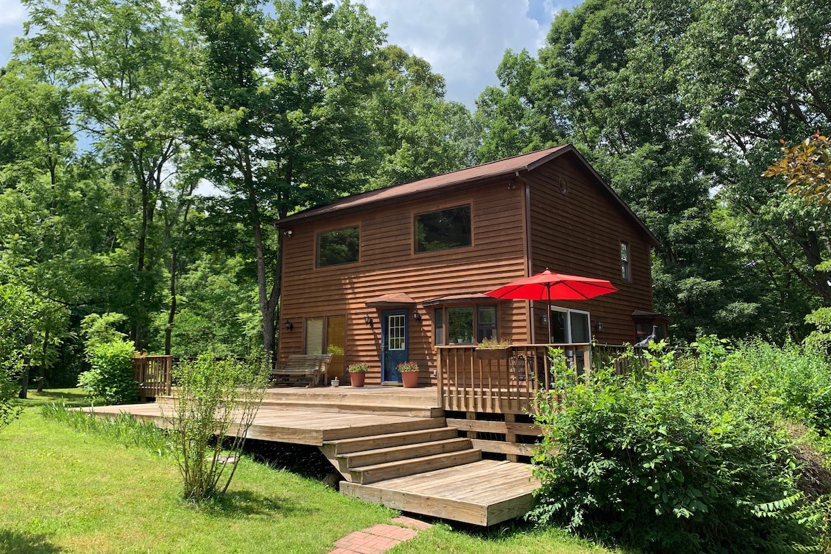 कुटुंबापासून दूर जाण्यासाठी किंवा जोडप्यांसाठी रिट्रीटसाठी योग्य! शांत खाडीजवळ 15 लाकडी एकरवर वसलेले रस्टिक, वुडलँड केबिन. निसर्गाच्या सानिध्यात आराम करा, अनप्लग करा आणि आराम करा. खाजगी हॉट टबमध्ये सोकचा आनंद घ्या किंवा प्रशस्त, झाकलेल्या, बॅक डेकवर कौटुंबिक जेवणाचा आनंद घ्या. * विहिरीने पुरवलेले केबिनचे पाणी * कृपया प्रॉपर्टीवर सेल सेवा नसल्यामुळे आगमनापूर्वी चेक इन माहिती आणि वायफाय पासवर्ड सेव्ह करा रटलँडपासून 6 मैल, अथेन्सपासून 25 मैल आणि हॉकींग हिल्सपासून 45 मैल अंतरावर आहे