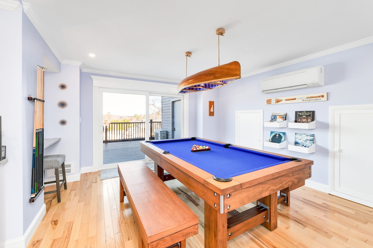 Top 10 AirBnB destination and Pool is now open! Retreat to this newly updated Studio with Lake Winnipesaukee views. 1mi. to Weir’s beach. Stocked kitchen with brand new Queen Bed set & private outdoor patio, 55” TV, and AC unit. Centrally located in Lakes Region: Activities galore including mini golf & arcades. Close proximity to mountains, hiking, BOA Pavilion Concerts, boat, breweries, golf, dining. New $500k pool/hot tub, observation deck, fire pit, basketball/pickle ball, parking