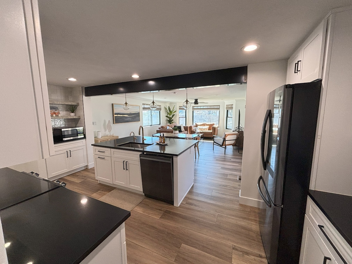 सुंदरपणे सुशोभित केलेला एक बेडरूम विटांचा बंगला मोठ्या बेटासह कस्टम गॉरमेट किचनच्या आलिशान पण मोहक भावनेचा आनंद घेतो, क्वार्ट्ज काउंटरटॉप्स, घन आणि काचेच्या फ्रंट कॅबिनेट्सचे मिश्रण टॉप - ऑफ - द - लाईन स्टेनलेस स्टील स्मार्ट उपकरणे अलेक्सा दिशानिर्देश, हवामान किंवा प्ले म्युझिक विचारतात आणि एलजी स्मार्ट रेफ्रिजरेटरची वायफाय स्क्रीन उत्तर देईल. युरोपियन शॉवर ग्लास, सबवे टाईल्स, इष्टतम पाण्याच्या दबावासह रेन शॉवरहेड असलेले सर्व टाईल्स बाथरूम या अनोख्या जागेची स्वतःची एक शैली आहे.